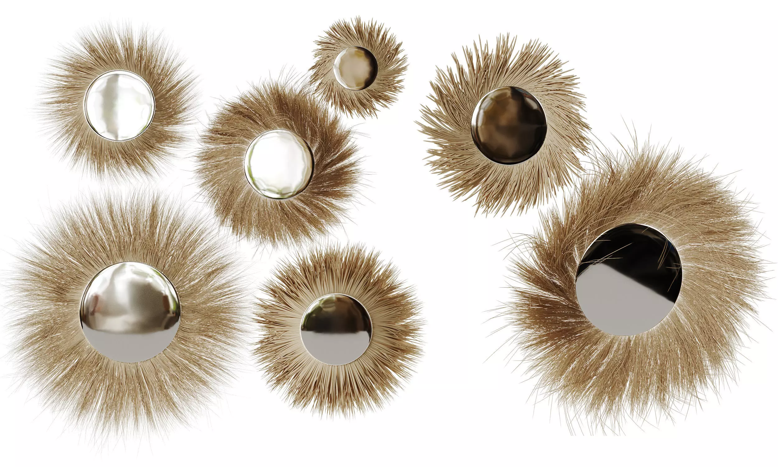 • Mirrors in a straw and palm frame
