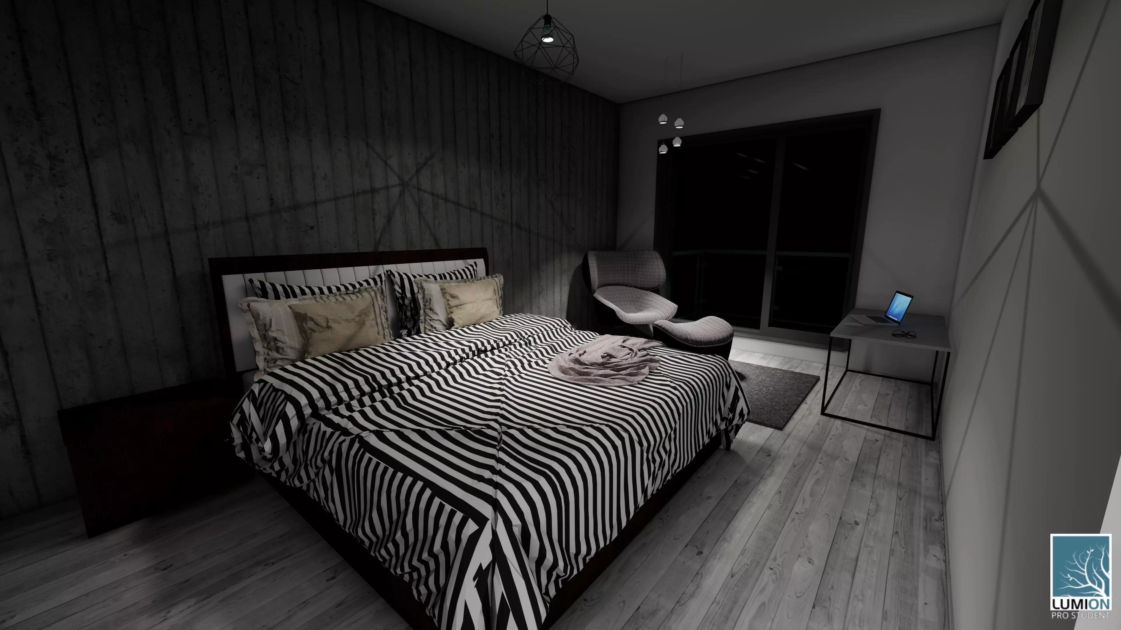 The model has material settings that define how surfaces look (color, shine, transparency, etc.).
