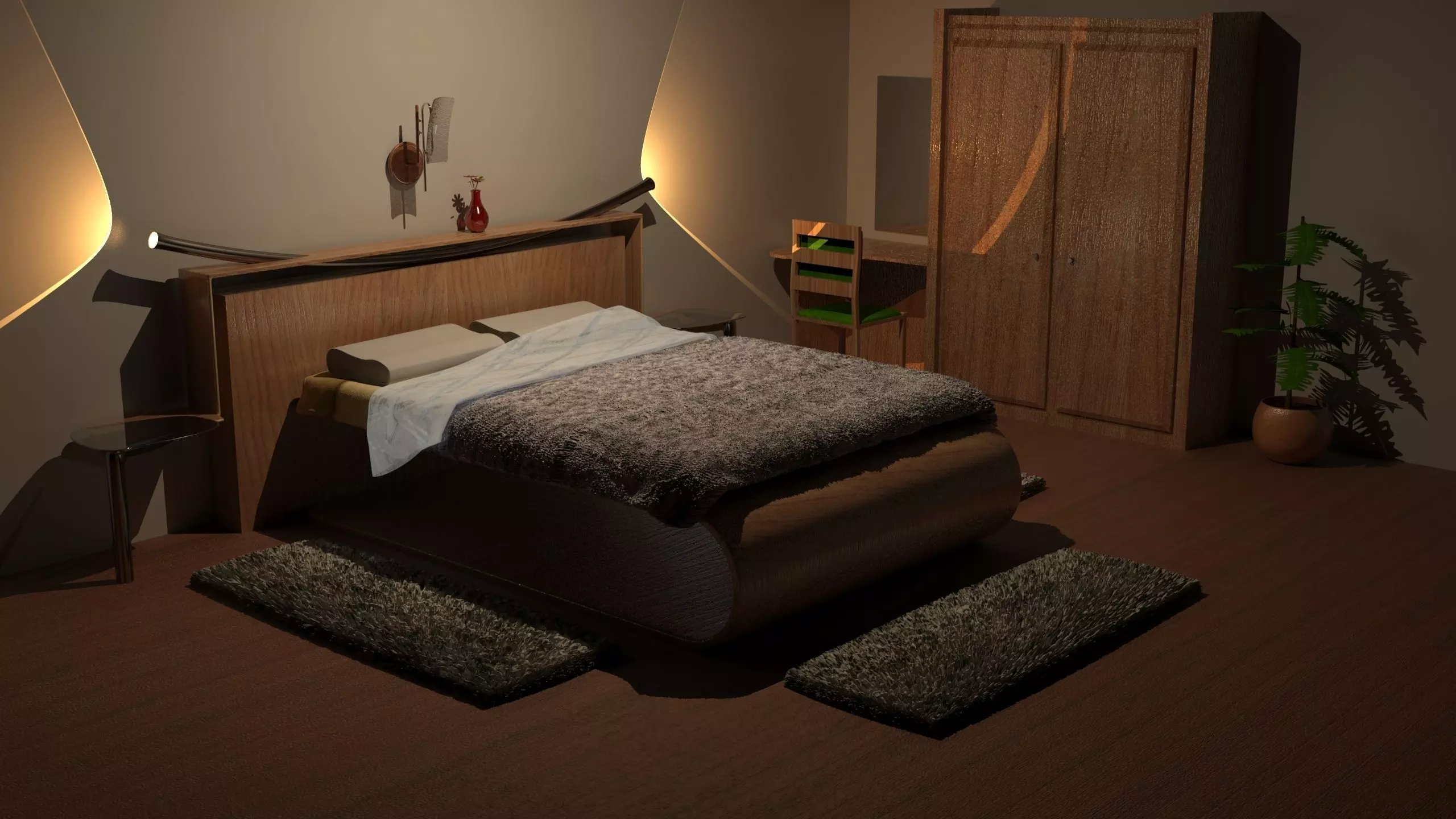 The model has material settings that define how surfaces look (color, shine, transparency, etc.).
