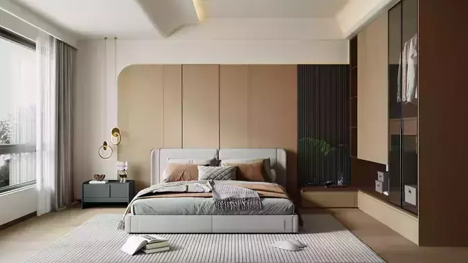 Modern Minimalist Wooden Bedroom 133 3D model