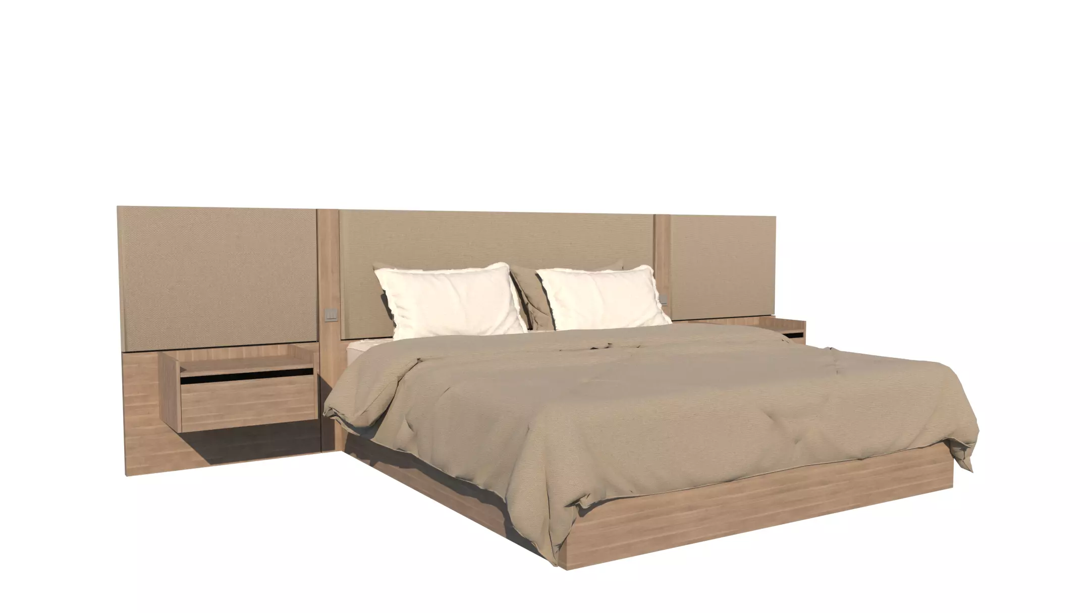 This high-quality 3D model of a modern upholstered bed with built-in nightstands is perfect for interior design projects, architectural visualizations, and game development. The model features a sleek design with a comfortable headboard and integrated storage space. It is available in SketchUp format (.SKP) with high-poly geometry and detailed textures, making it ready for rendering or direct use in your projects.