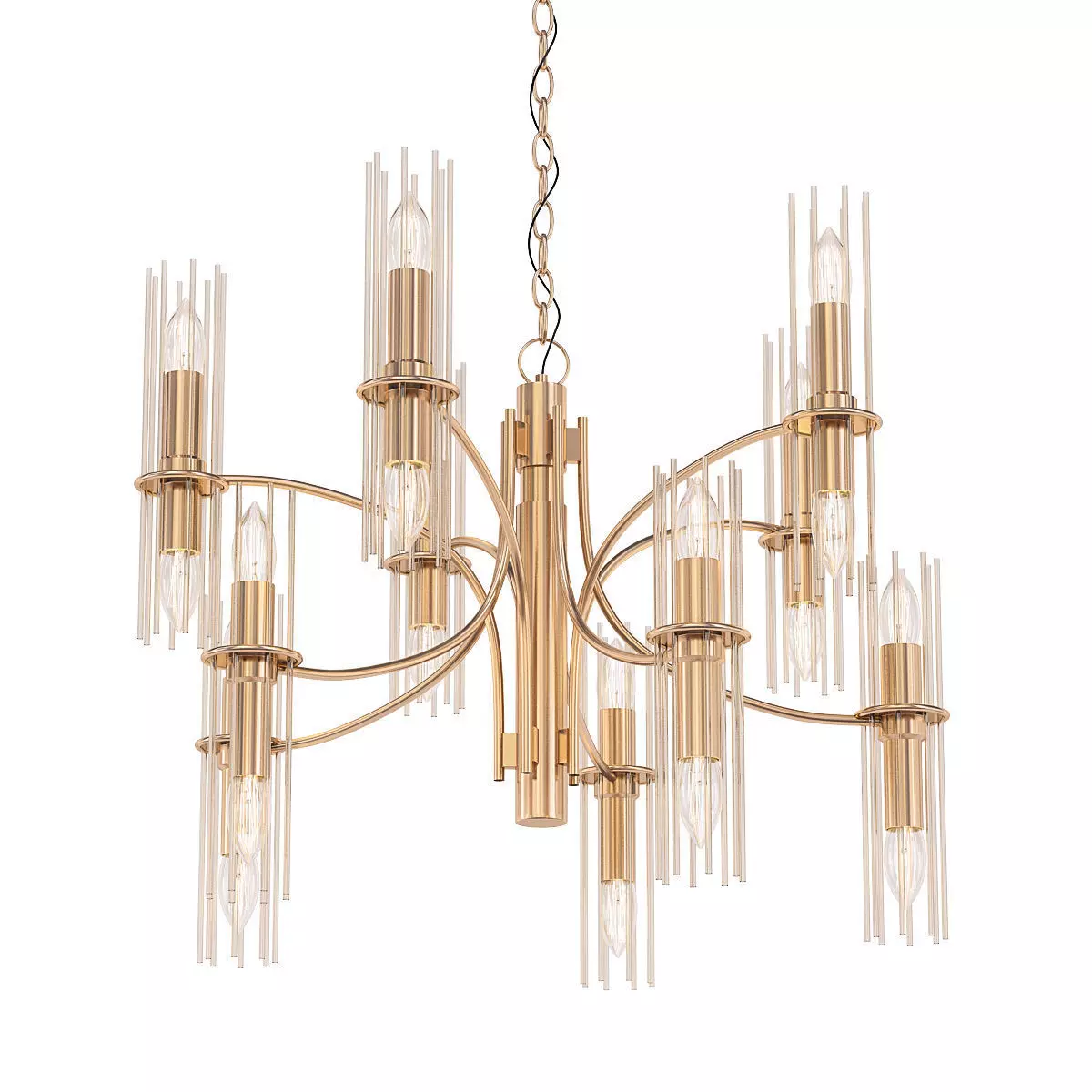 One Tube Rod Brass Chandelier by Gaetano Sciolari for Lightolier, 1960s