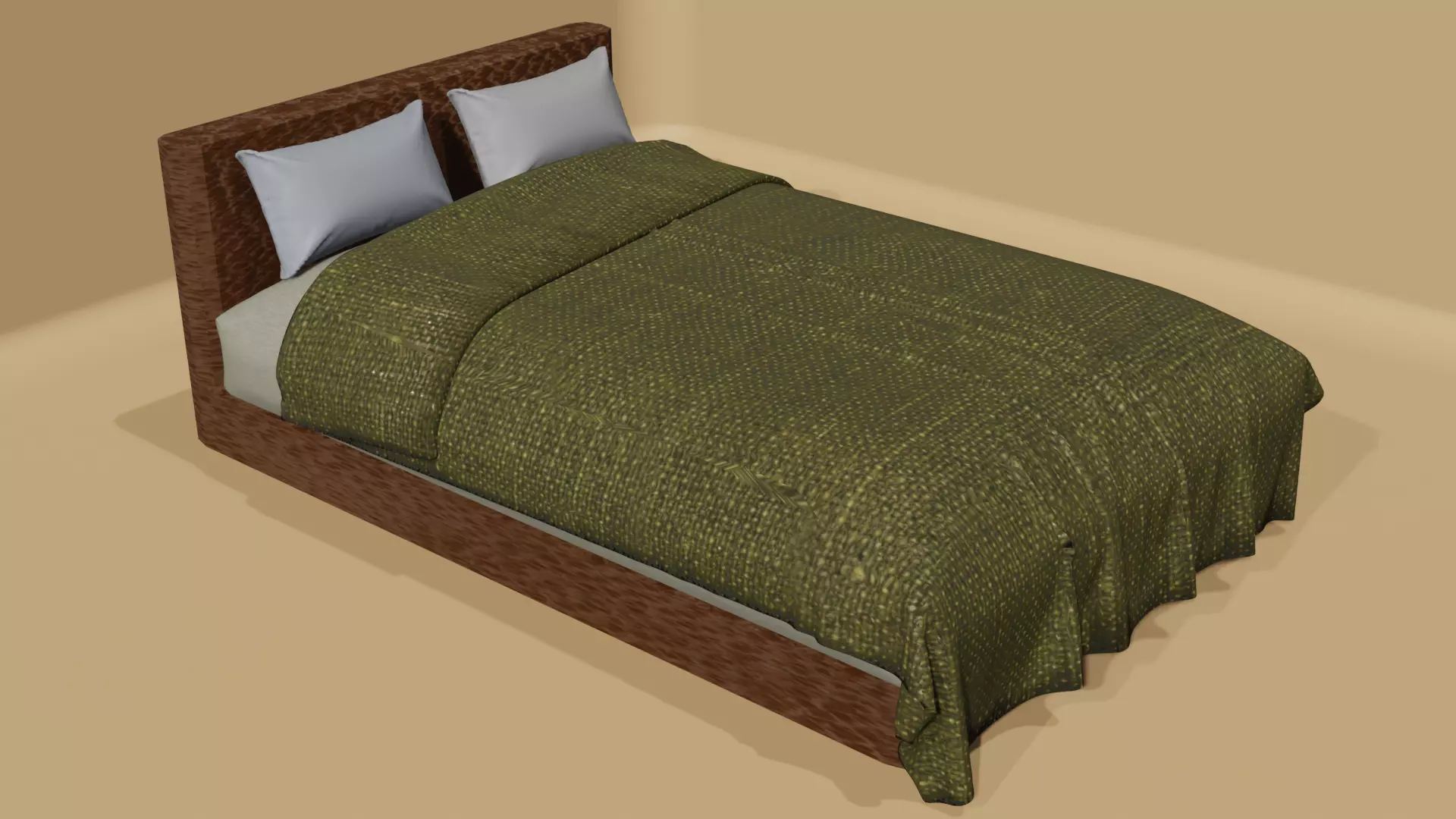 This is a realistic 3D Model of a bed made in Blender 3.6 that will help in creation of interiors. The rendering engine used to take the preview images is Evee. The bed contains a basic structure, a mattress, a blanket on it with the top part folded to make it look realistic and the bed has a couple of pillows. Textures have been added and further instructions about the use of textures is included in this description. Textures have been UV unwrapped and scales have been adjusted in the Shader Editor.