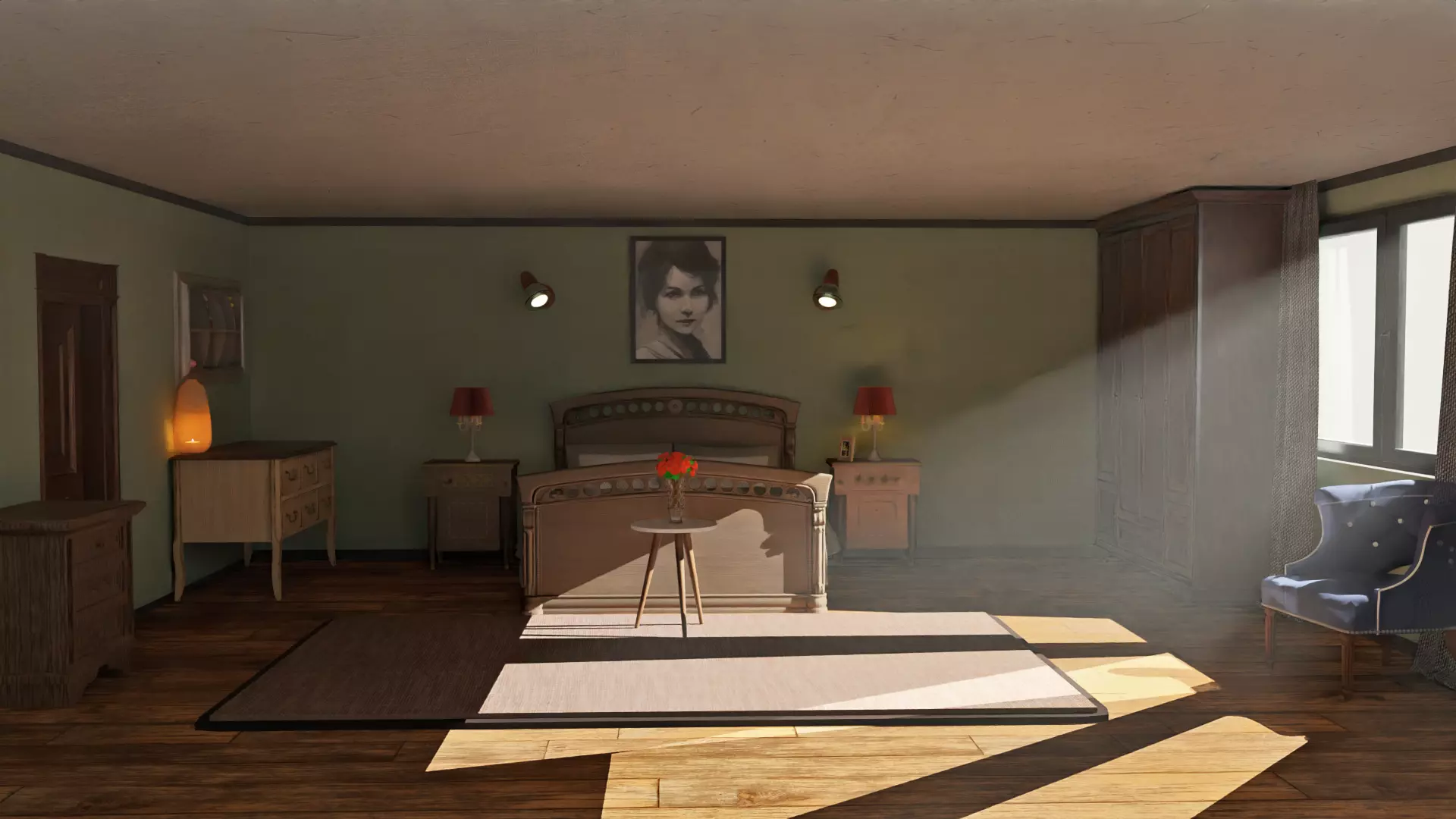 The model has material settings that define how surfaces look (color, shine, transparency, etc.).