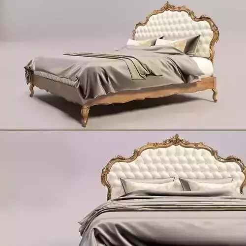 Experience the pinnacle of Italian craftsmanship with this Roberto Giovannini inspired baroque carved bed, featuring an ornately sculpted frame with elaborate rococo details and luxurious button-tufted headboard. This premium asset includes meticulously layered bedding with silk textures and decorative pillows, making it perfect for luxury interiors, period visualizations, high-end product catalogs, and cinematic/game environments requiring authentic classical elegance.