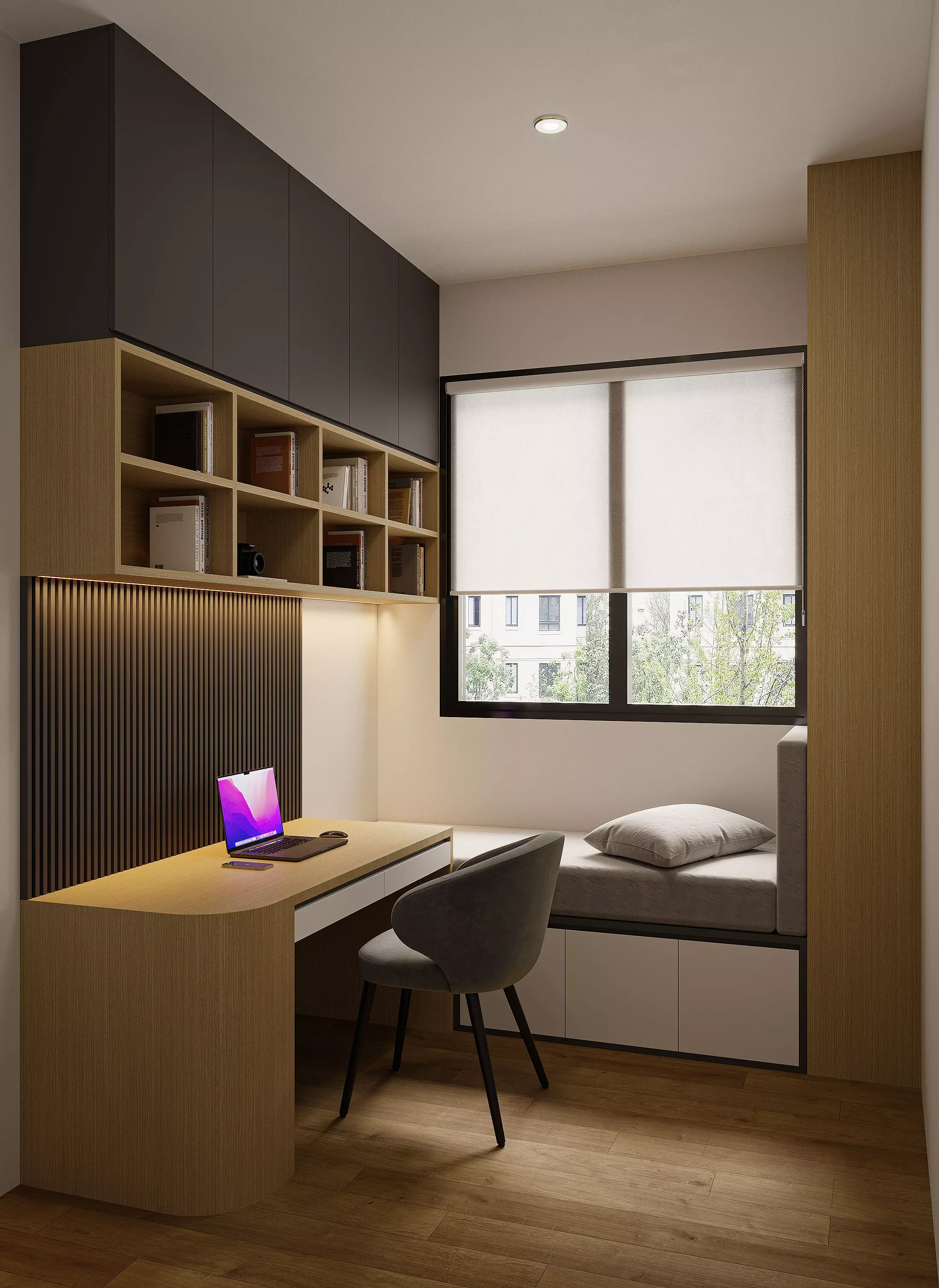The model has material settings that define how surfaces look (color, shine, transparency, etc.).