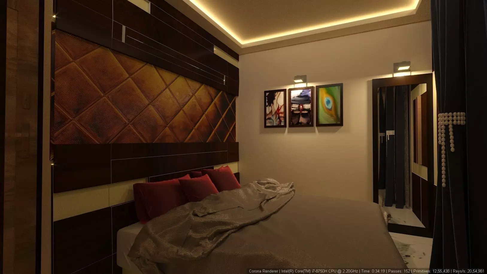 The model has material settings that define how surfaces look (color, shine, transparency, etc.).