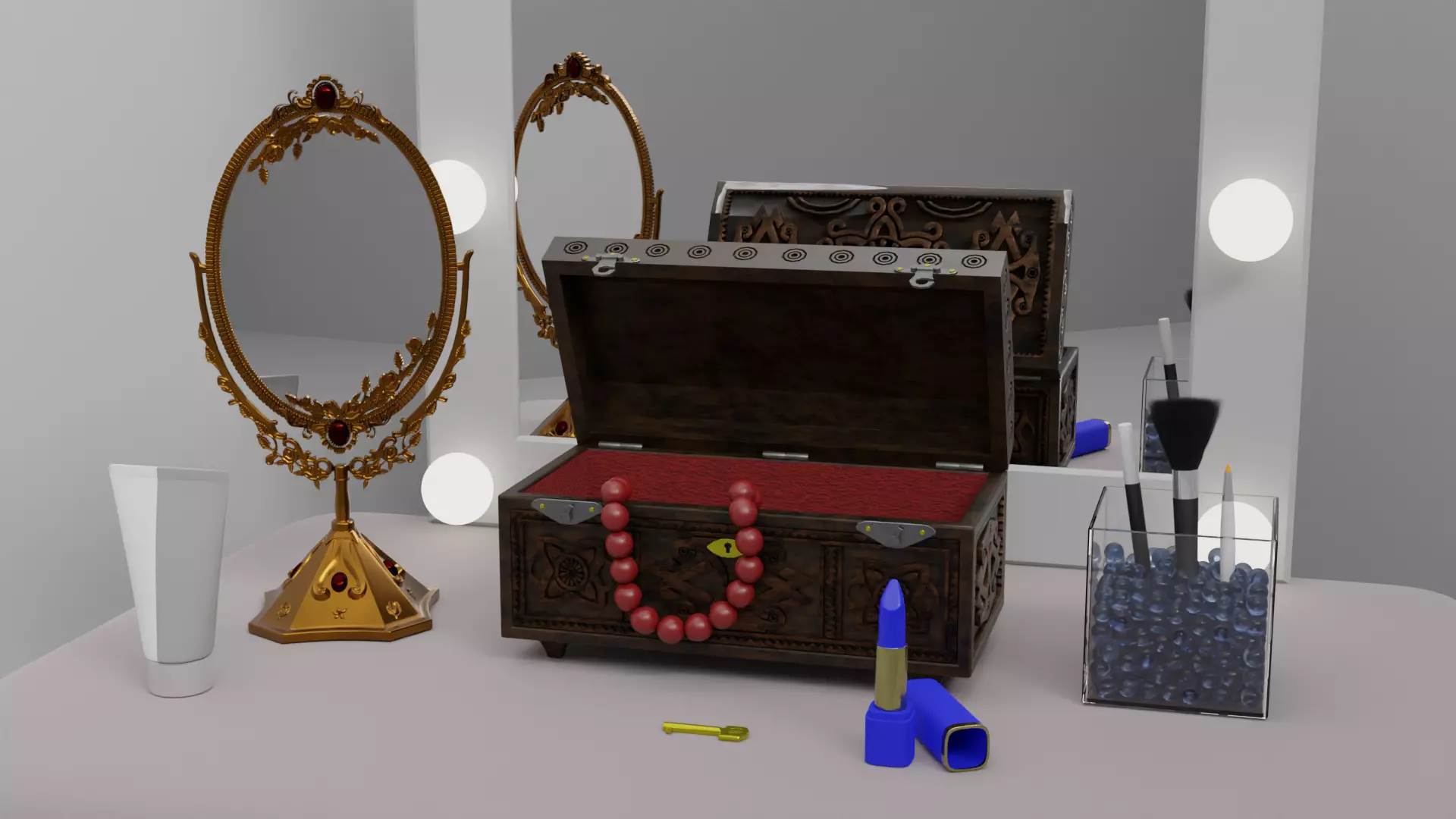 The model has material settings that define how surfaces look (color, shine, transparency, etc.).