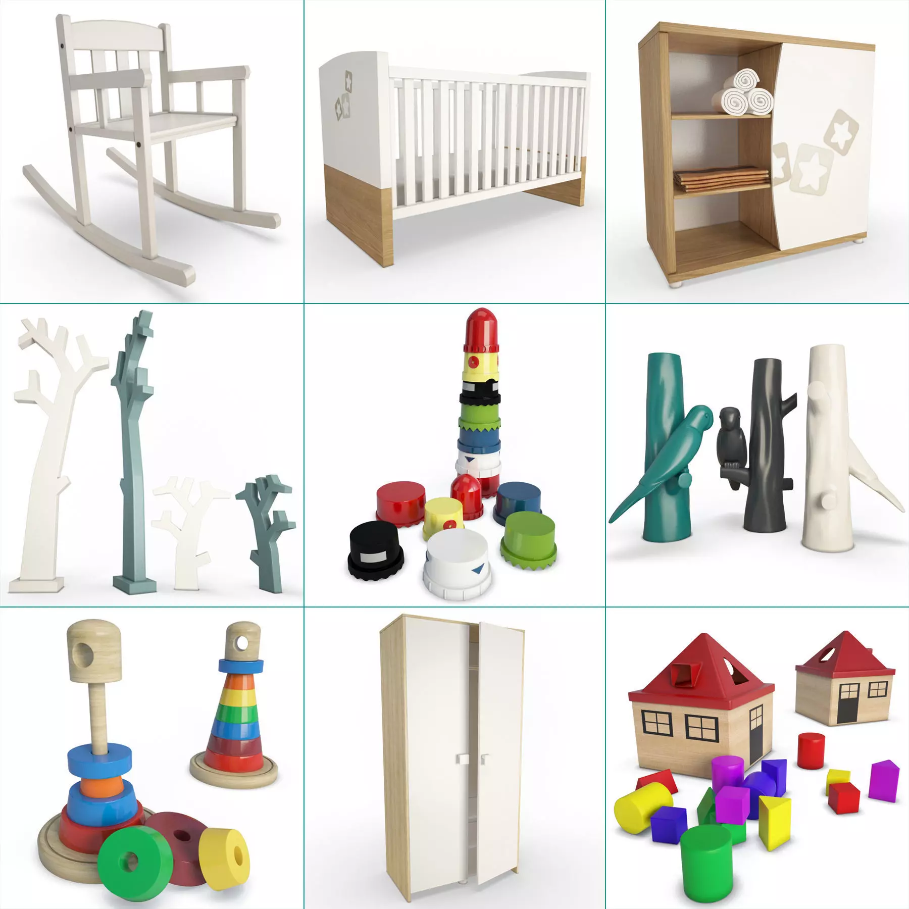 Baby Bedroom Set 3d Models include 10 3d models on the childhood theme.