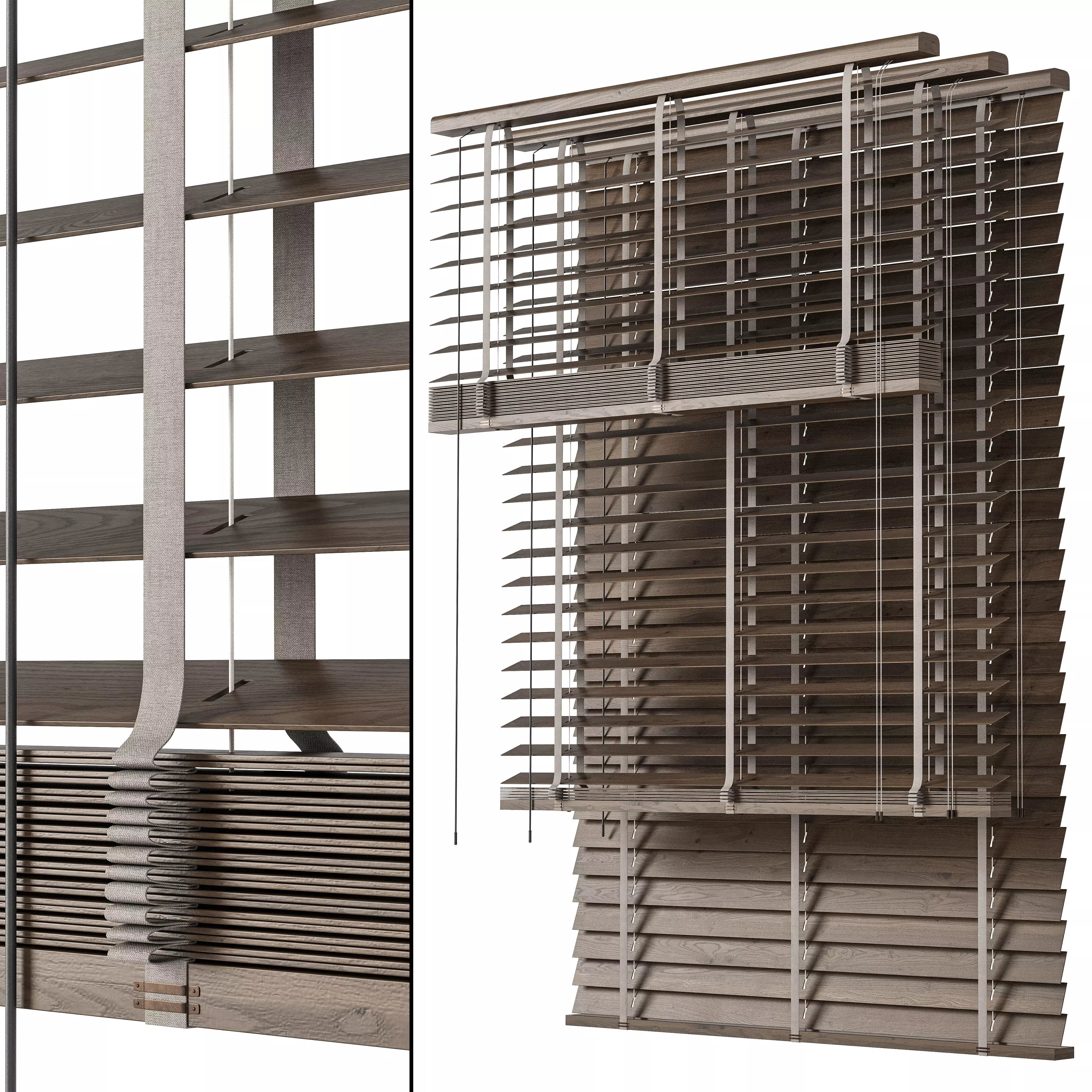 Wooden blinds Set 25The archive contains:Max 2015 Vray - CoronaobjFbxQuads onlyAll objects and materials are logically named.150cm, 100cm3 positions