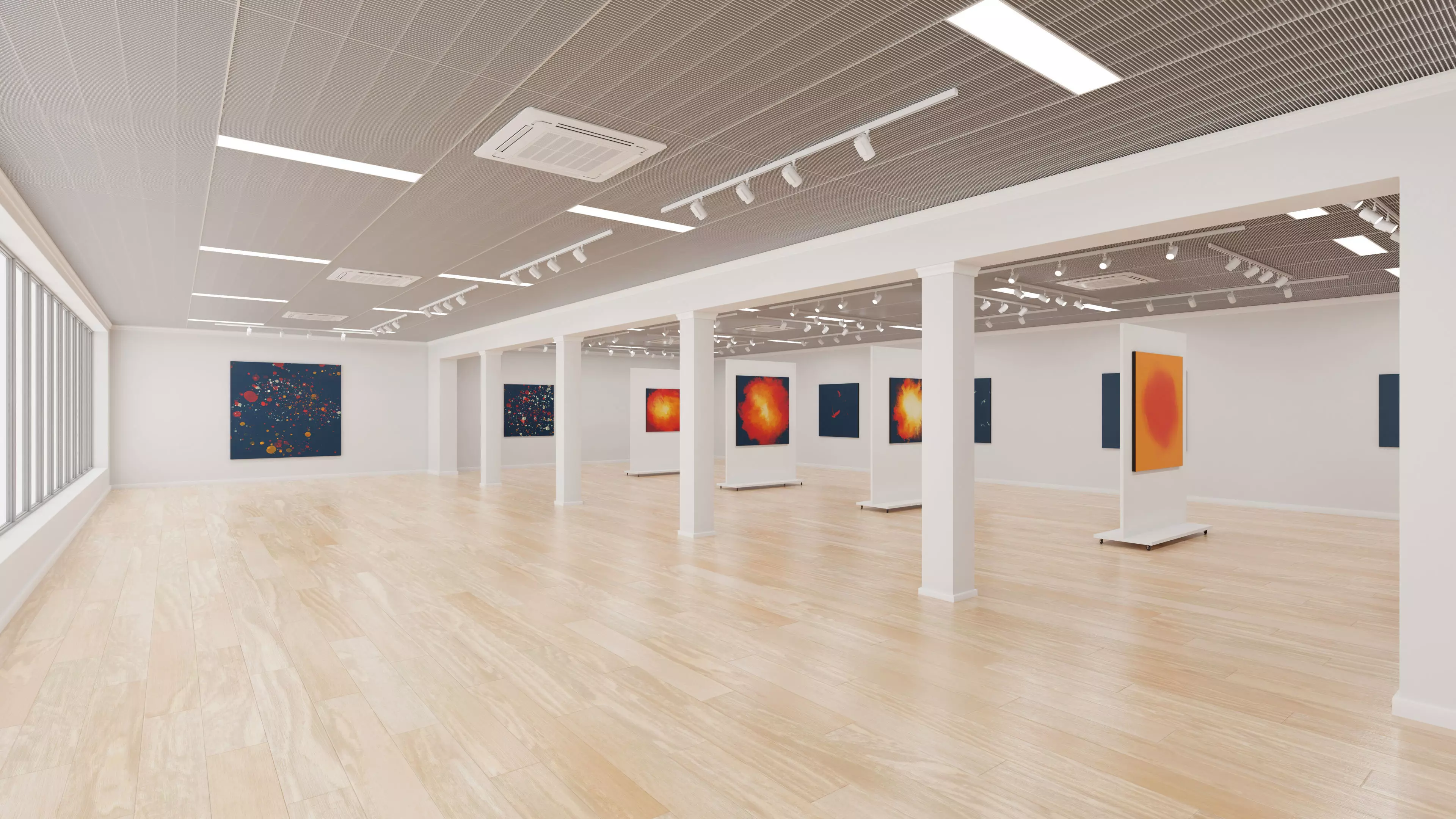 The model has clean and fairly low topology. The floor and paintings (front) are textured. Rest of the scene is not UV unwrapped.