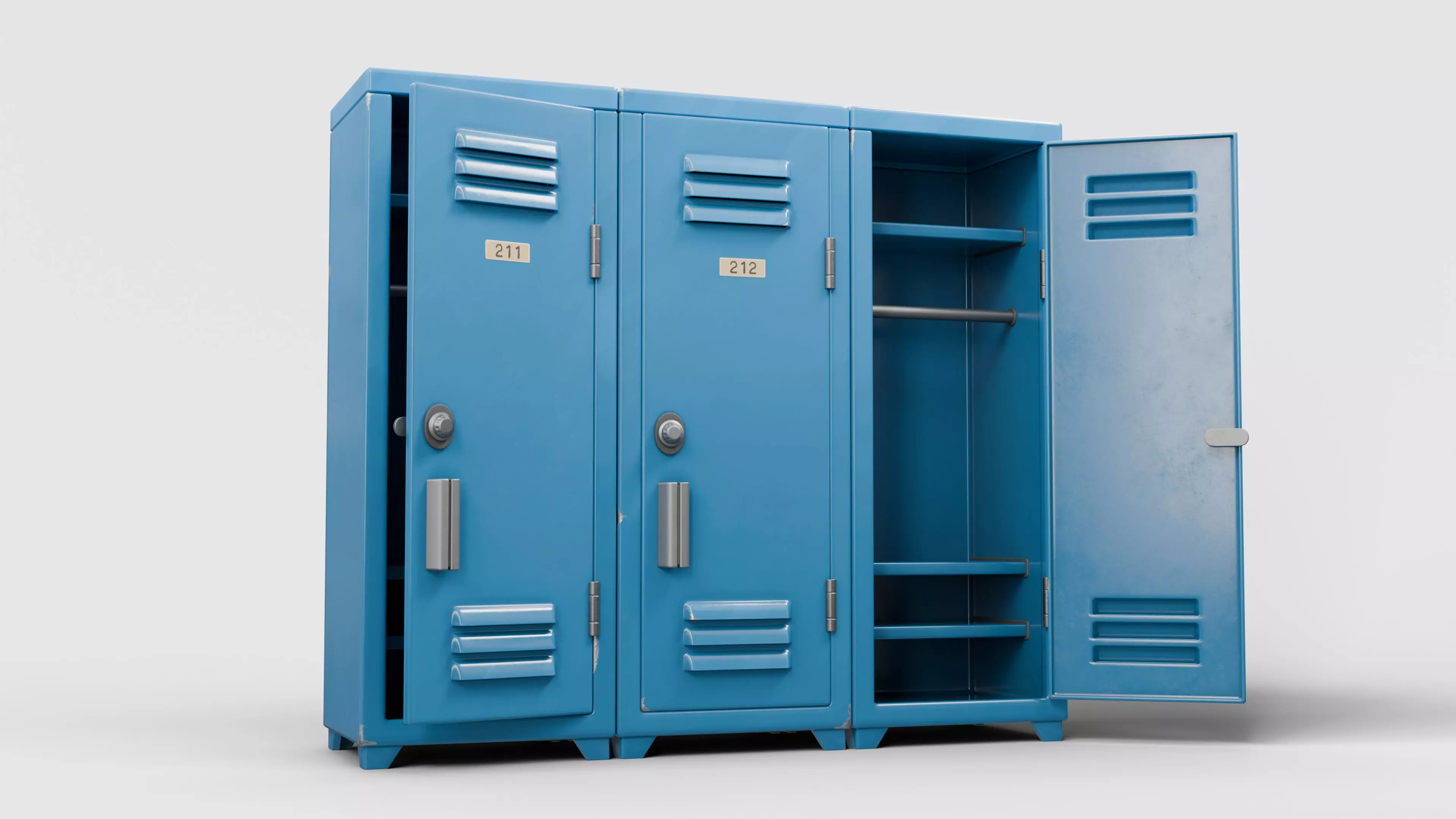 A low-poly 3D model of cartoon-style metal school lockers 01, designed to enhance your rendering projects. The model features fully textured and detailed surfaces, making it suitable for close-up shots. It was originally created in Blender 5.01 and rendered using Cycles. Hope you like it!