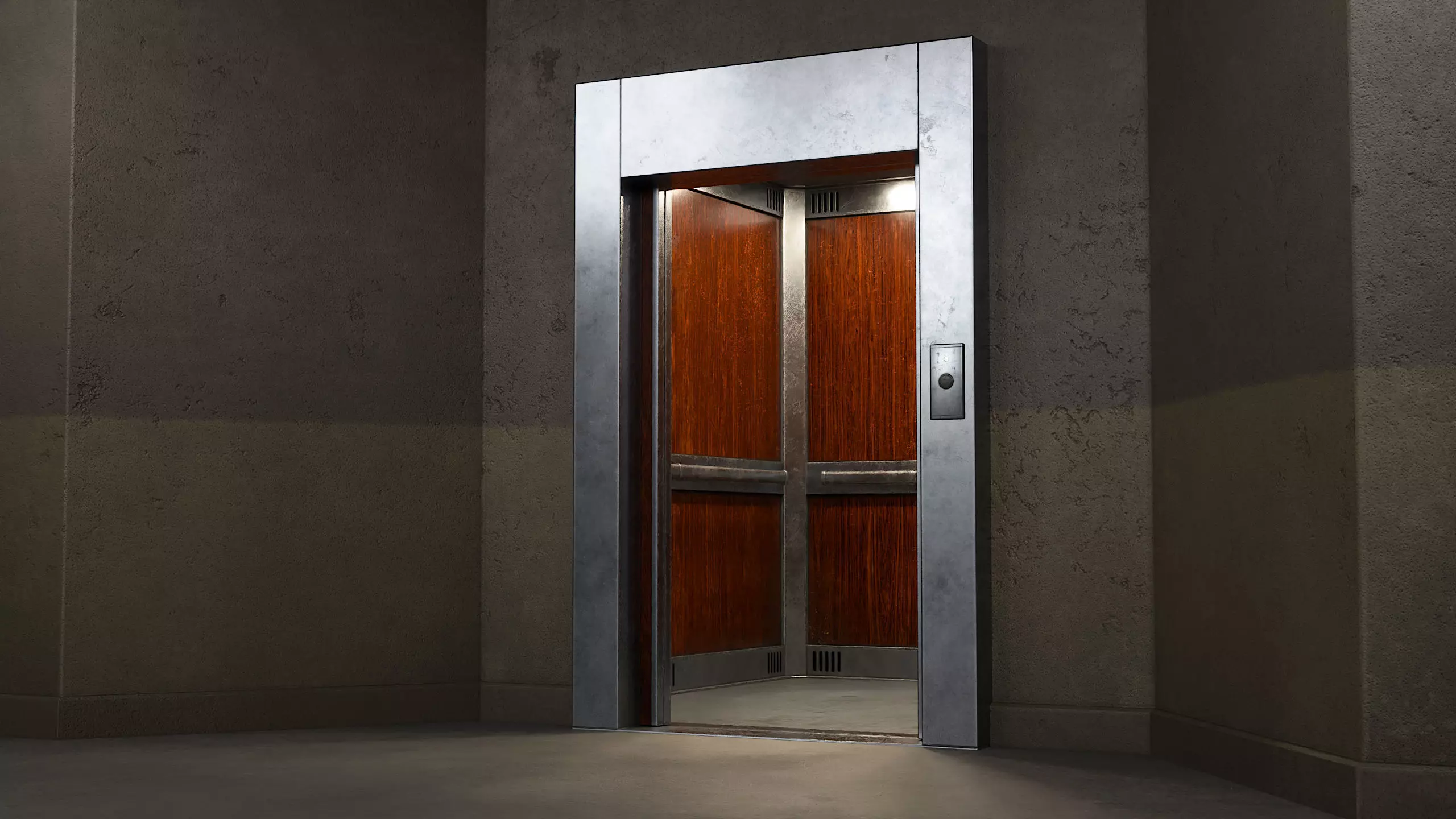 Model of a classic and old elevator with traces of use and dirt.
