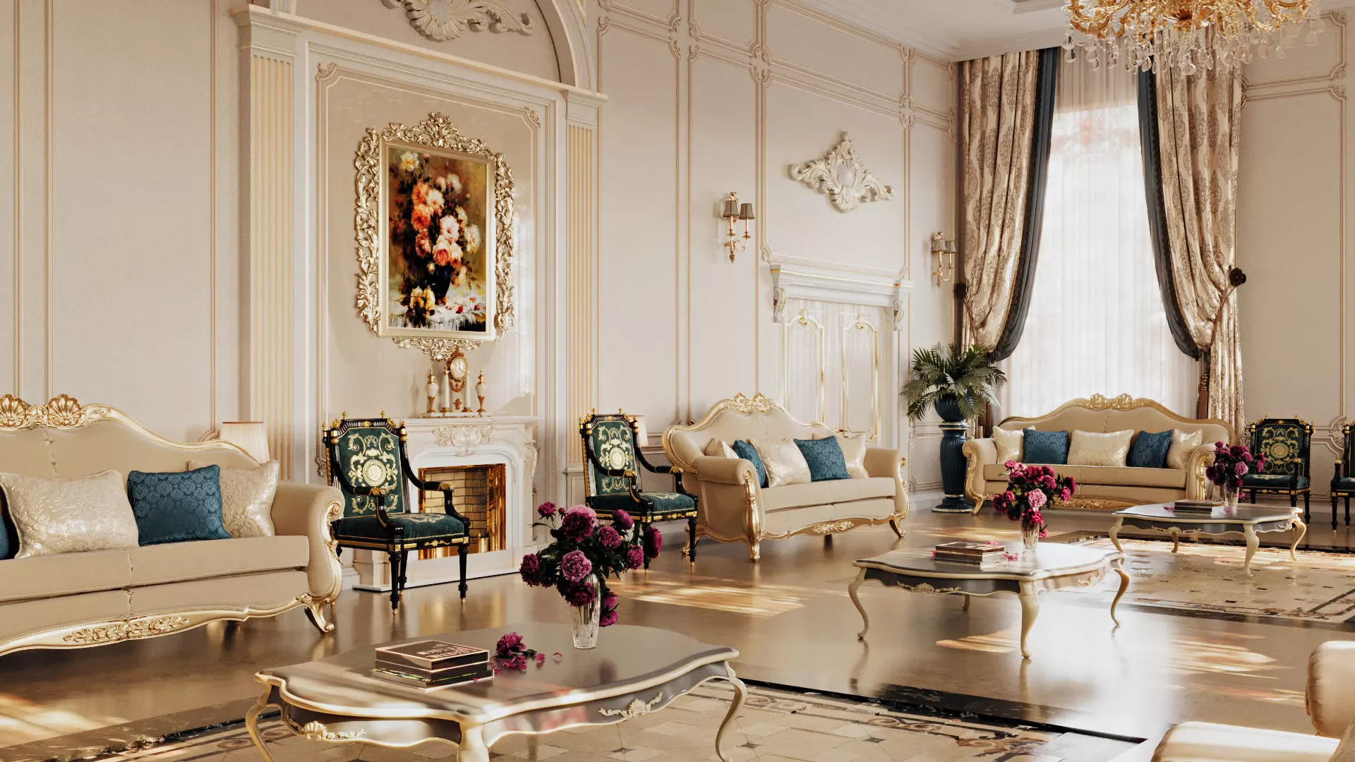 Detailed classic interior roomScene is made up of modular sections instanced and can be edited to create a larger or smaller spaceScene was rendered with Corona for 3dsMax 2020Lighting setup is included.