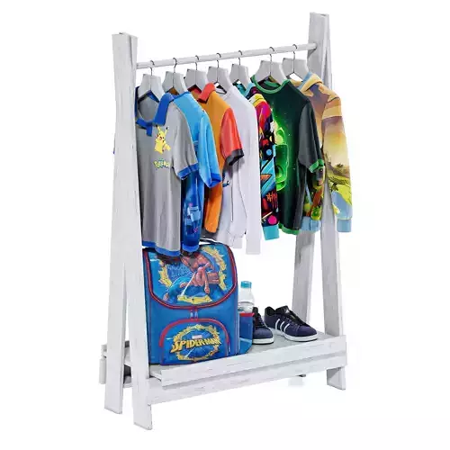 Wooden folding hanger with 7 pieces of clothes, a briefcase and a pair of Adidas sneakers. The 3D model was created with all materials for Corona rendering. Materials 3ds max 2019.max - with materials for Corona. The file is ready to import into any program. *.fbx.Polys: 889 698;Verts: 909 875;Made in geometry. Adjust TurboSmooth. optional.