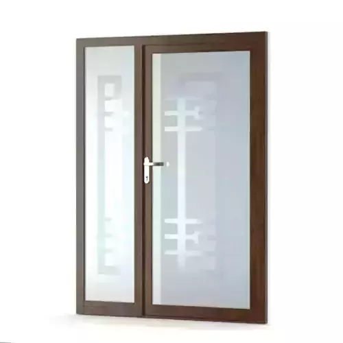 Dark Wood Door With Modern Glass 3D model
