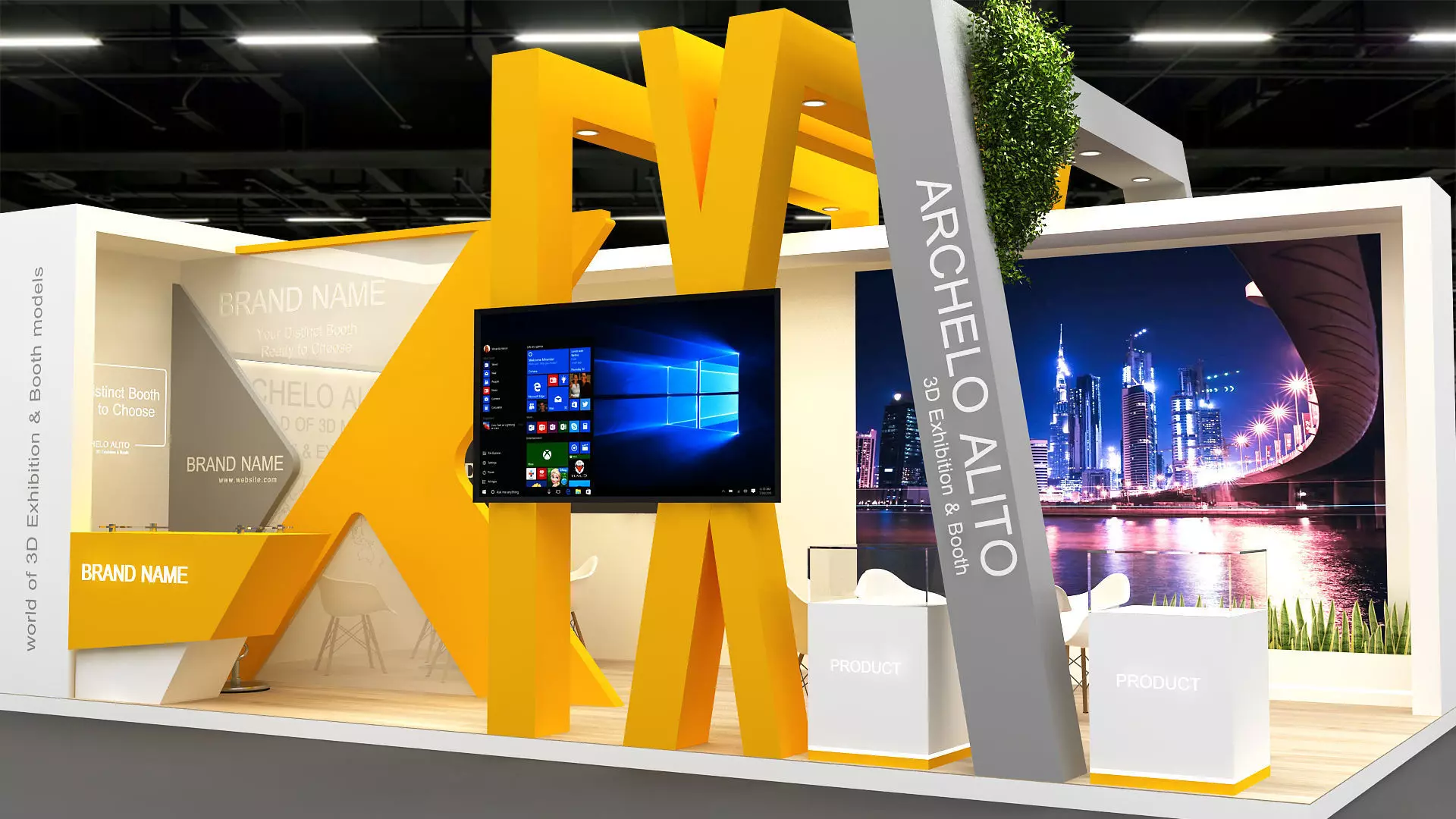 3D Model Exhibition Fully applicable with correct Size and scaleSize: 4m X 8m 2side openinclude design all necessary area in Exhibition and Booth Such as Vip and Storage and Counters and also Stand for products