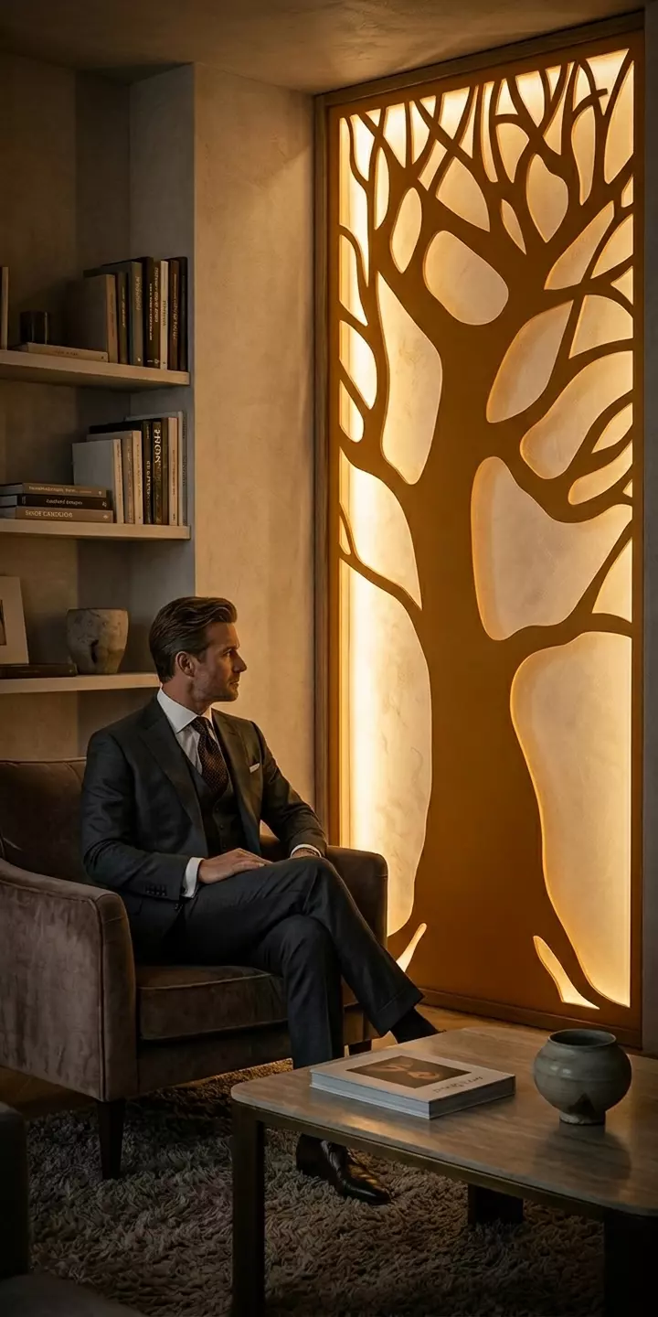 A luxury wall panel featuring a modern parametric tree design inspired by organic forms and elegant geometry.This artwork is perfect for CNC or laser cutting production and fits beautifully in offices, reception areas, modern living rooms, and premium interiors.