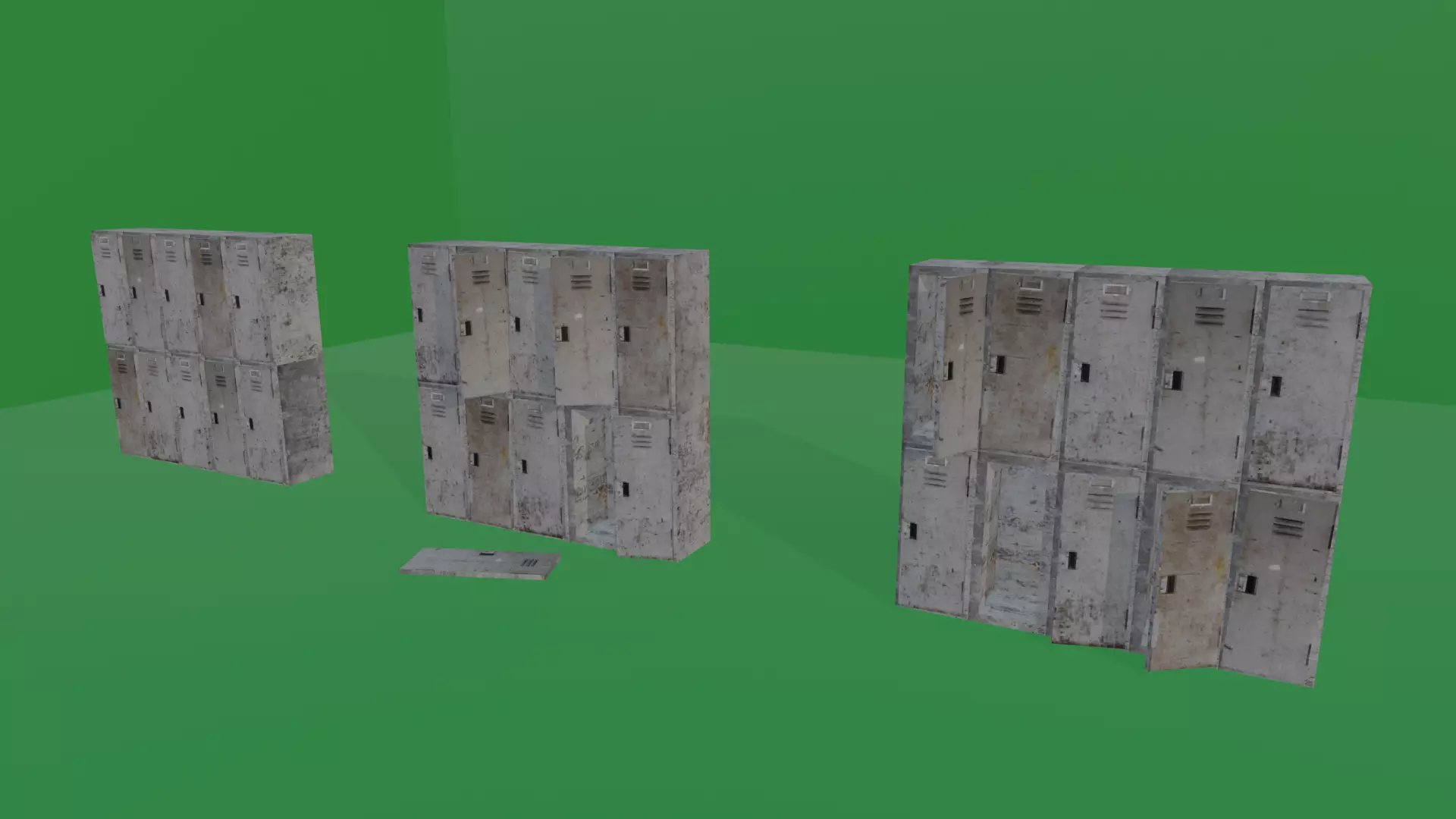 Multiple low-poly models of rusty, broken down and opened lockers with a pixelated texture. Perfectly suited for an abandoned school setting or to achieve a retro PS1 / low-poly artstyle for your game.