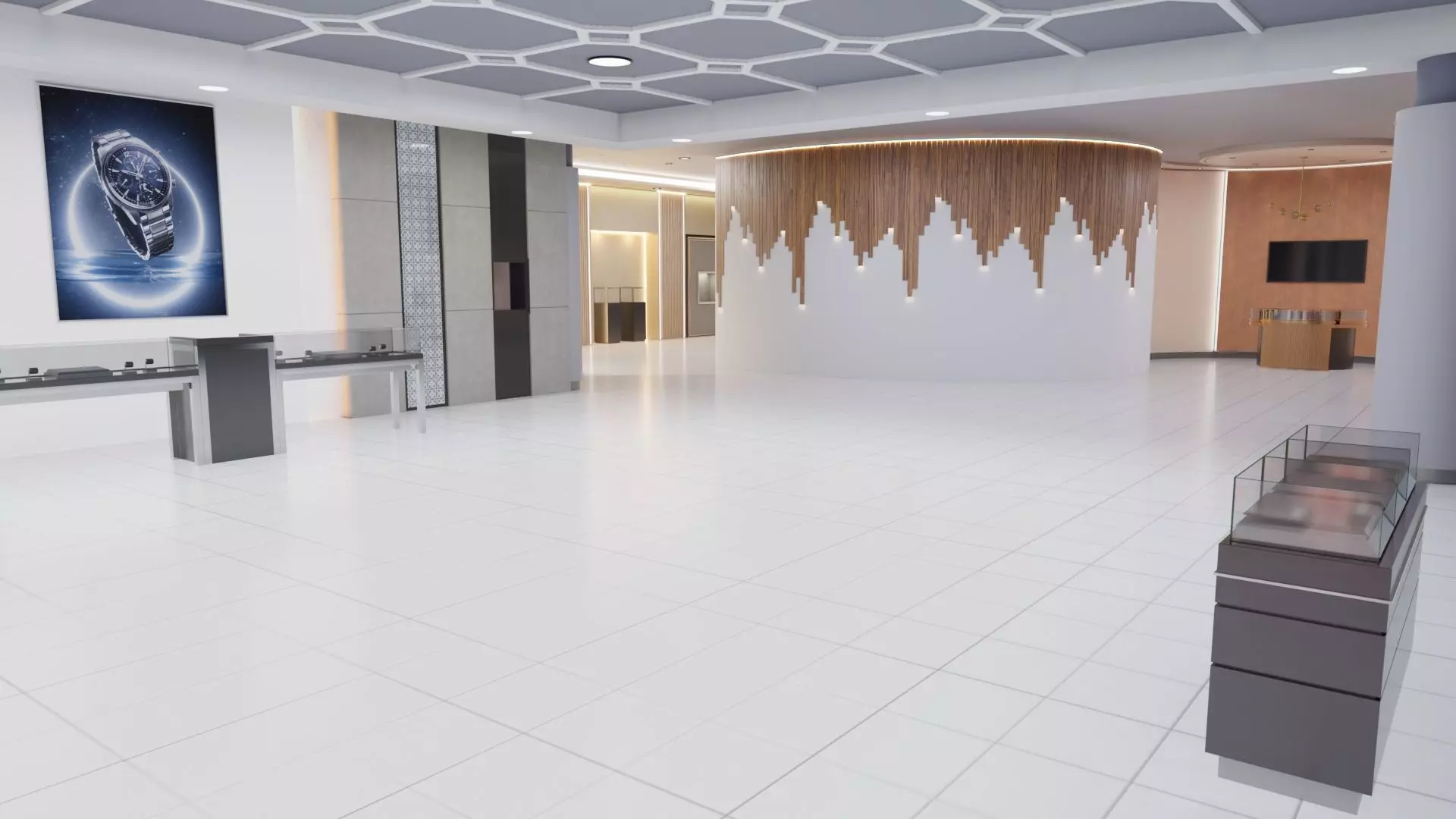 This Luxury Watch Showroom Interior 3D Model is a high-quality, professionally designed retail environment created for premium visualization projects, architectural renders, commercial presentations, and marketing purposes. The showroom represents a modern luxury watch boutique designed with elegance, minimalism, and photorealistic detailing in mind.