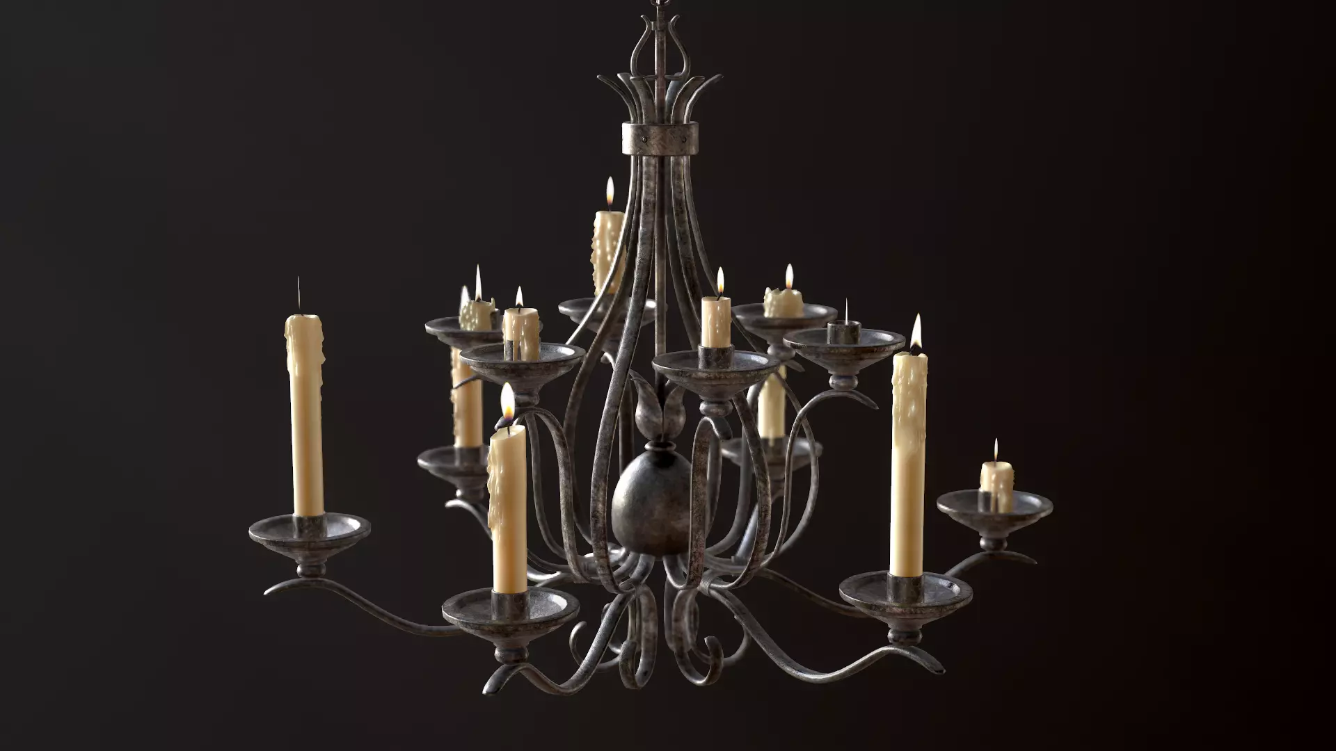 Old Medieval Chandelier with Candles Low-poly 3D model