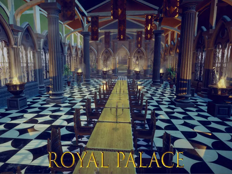 A complete scene including a Royal Palace 3D model with both exterior and interior. Additional props are included inside and outside! Furniture, tables, chairs, plants, statues, chandeliers, fountain, cups and others. The palace has 2 main rooms, a balcony together with a large entrance area. 3 types of statues are included (2 human and 1 horse).