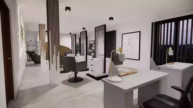 Beauty Salon space. This file has no protection. It is a modern-styled Hair saloon store ready to render with V-ray or Enscape software. One will find FBX files that can be imported into various modeling applications, such as Maya, 3ds Max, SketchUp, and Blender. Inside the file, one will find multiple materials, light setups, and camera angles that can easily be adjusted or changed to personal taste. This file does not have any protection. You can reuse the scene, the render settings, the lights, and the materials, but above all you can learn from the file, moving inside the project, observing how the light was created and handled, how materials are developed, what the role that every texture play within them, and the values that fill every single option.
