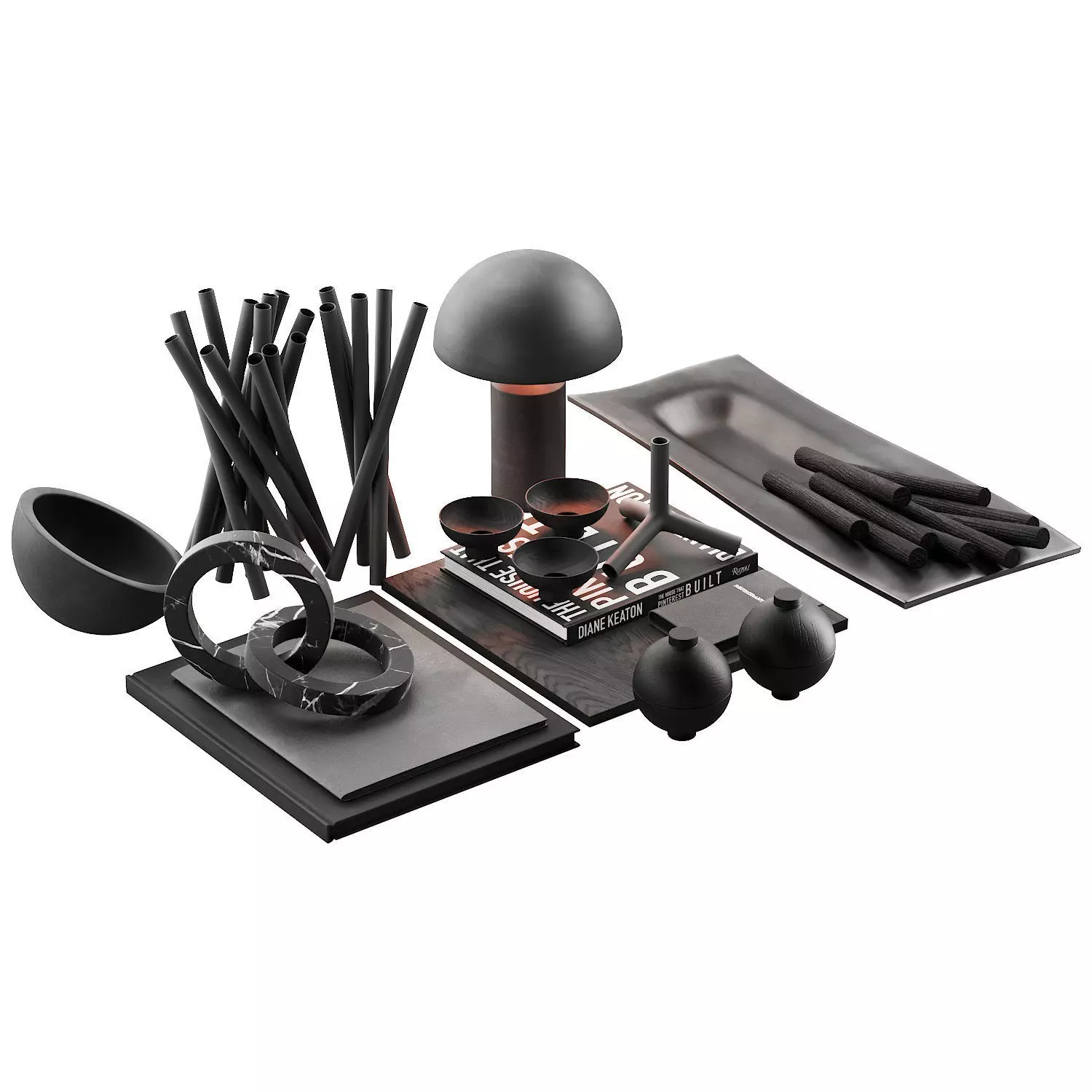 3d model of a decorative set for a coffee table, shelves, table, bedside tables or any other premises, consisting of: