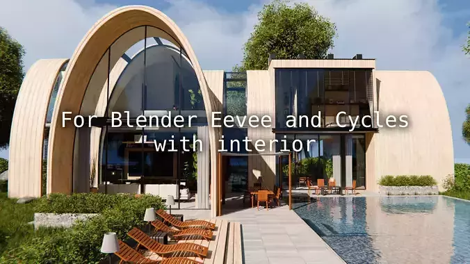 This is a high quality modular modern curved roof villa with a fully furnished interior for Blender Eevee and Cycles