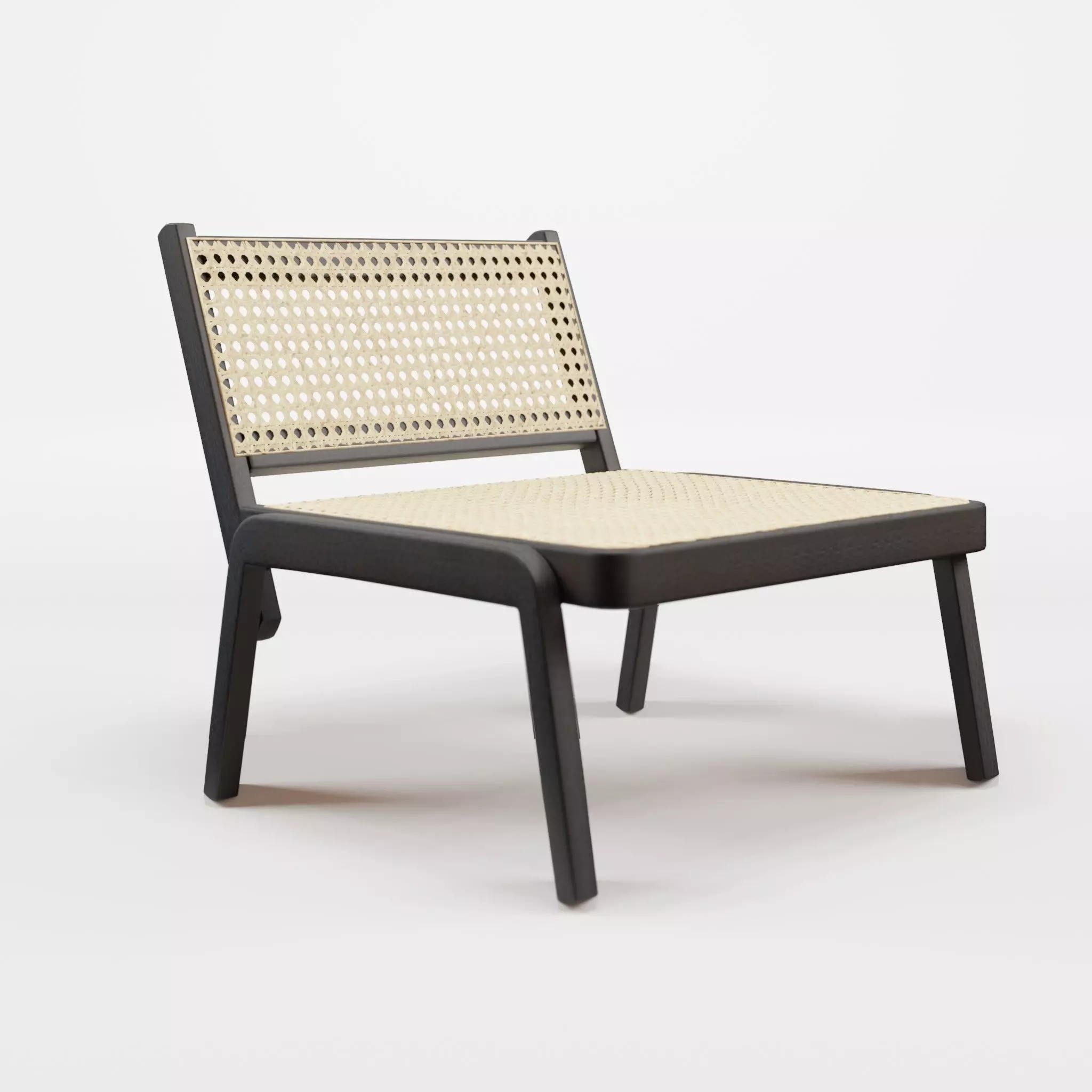 High-quality, photo-realistic model of a low lounge chair in meranti wood.