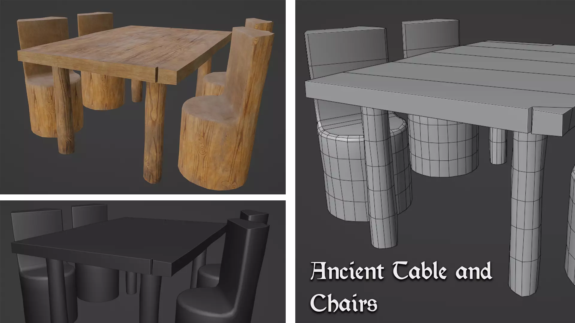 Ancient Table&Chairs Includes: TexturesFormats .FBX .OBJ Game Ready asset.