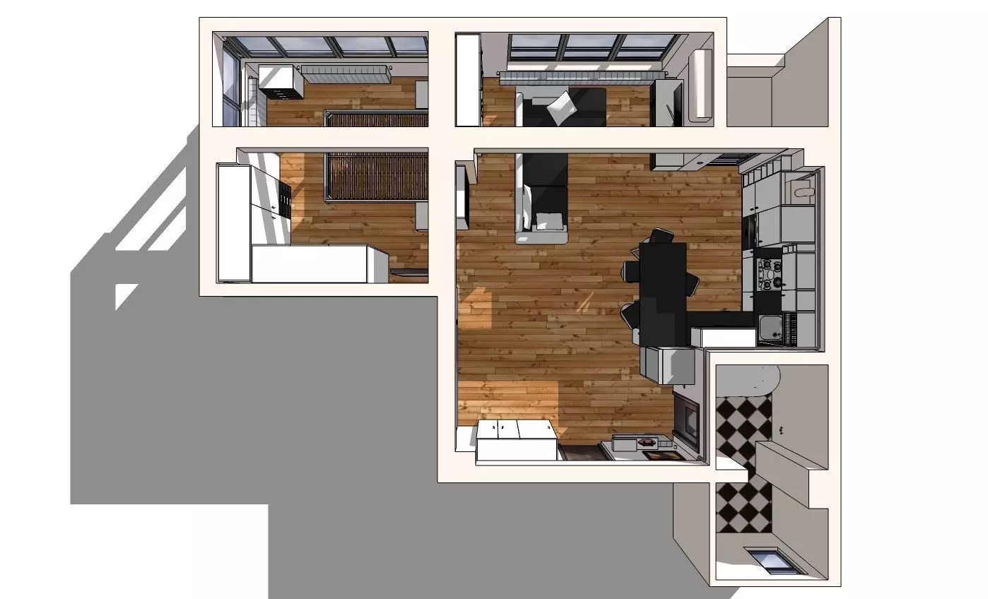 The model has material settings that define how surfaces look (color, shine, transparency, etc.).