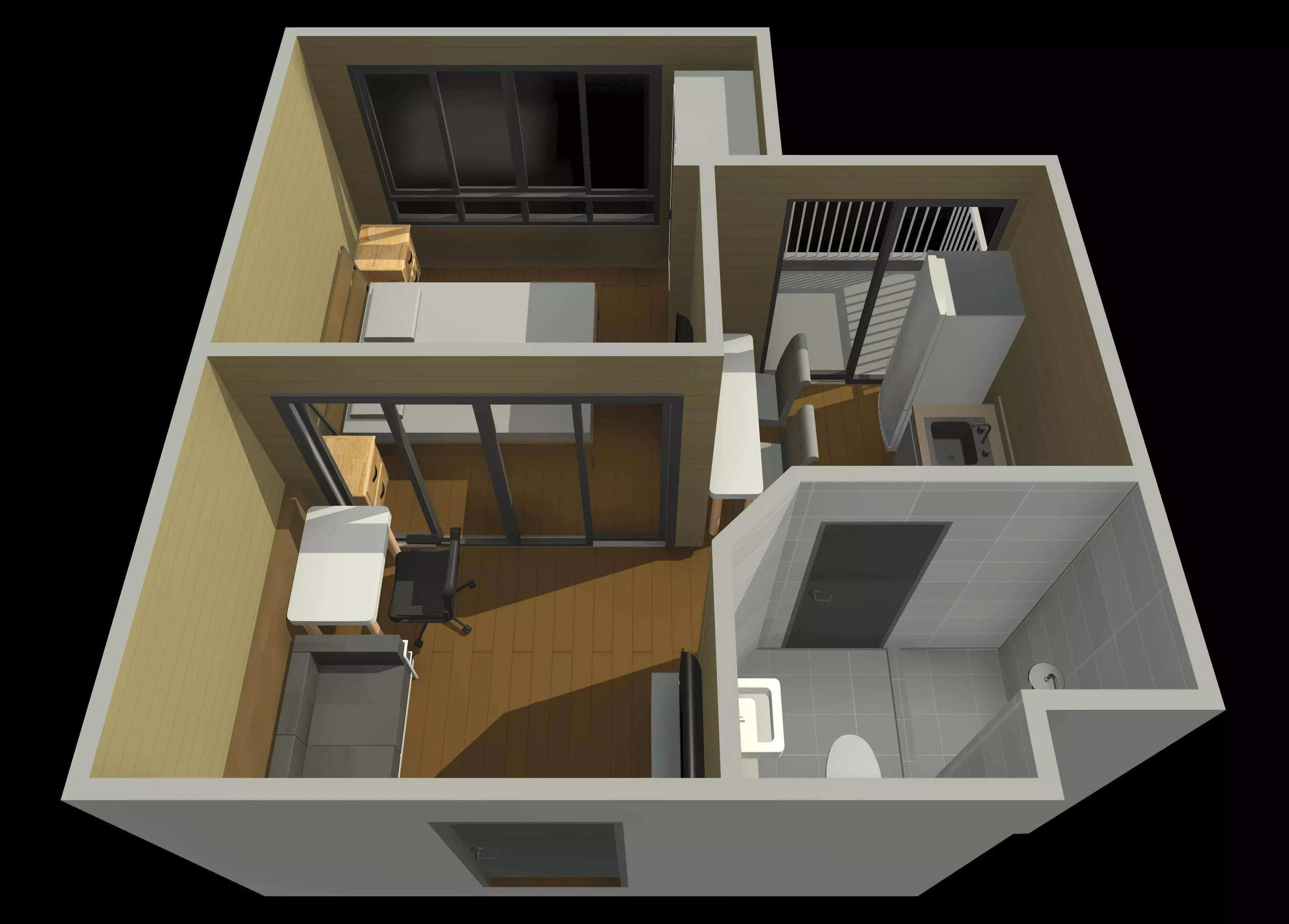 The model has material settings that define how surfaces look (color, shine, transparency, etc.).