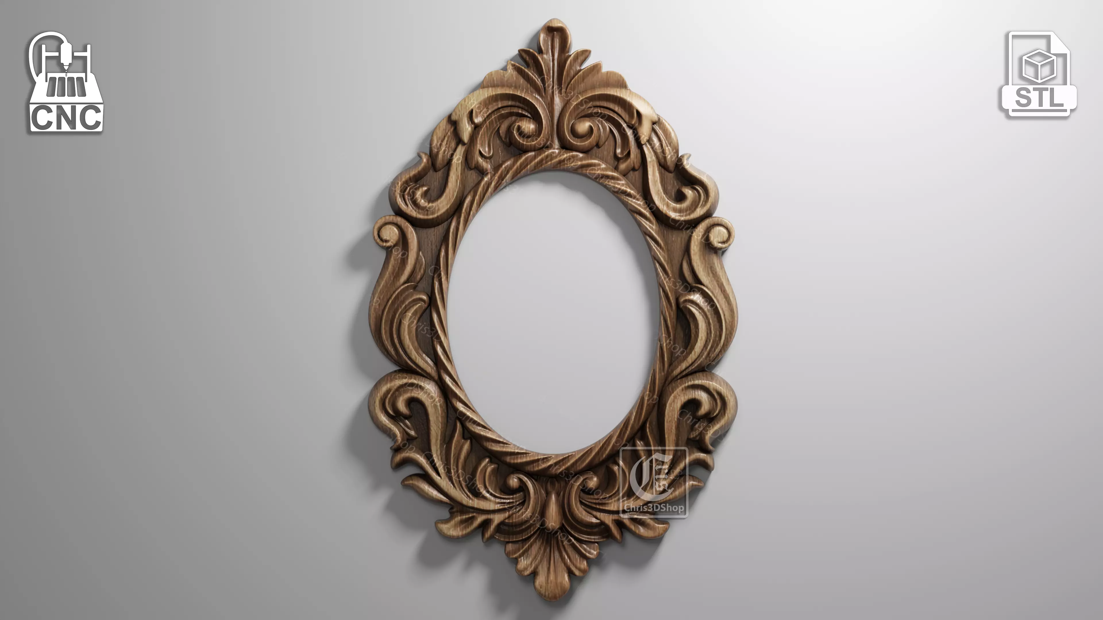 Baroque Style Frame - digital file in STL format that can be usedwith Aspire, Vcarve, Carveco, Artcam or any other software that allows you to import the STL file format, to be carved from wood with a CNC Router.