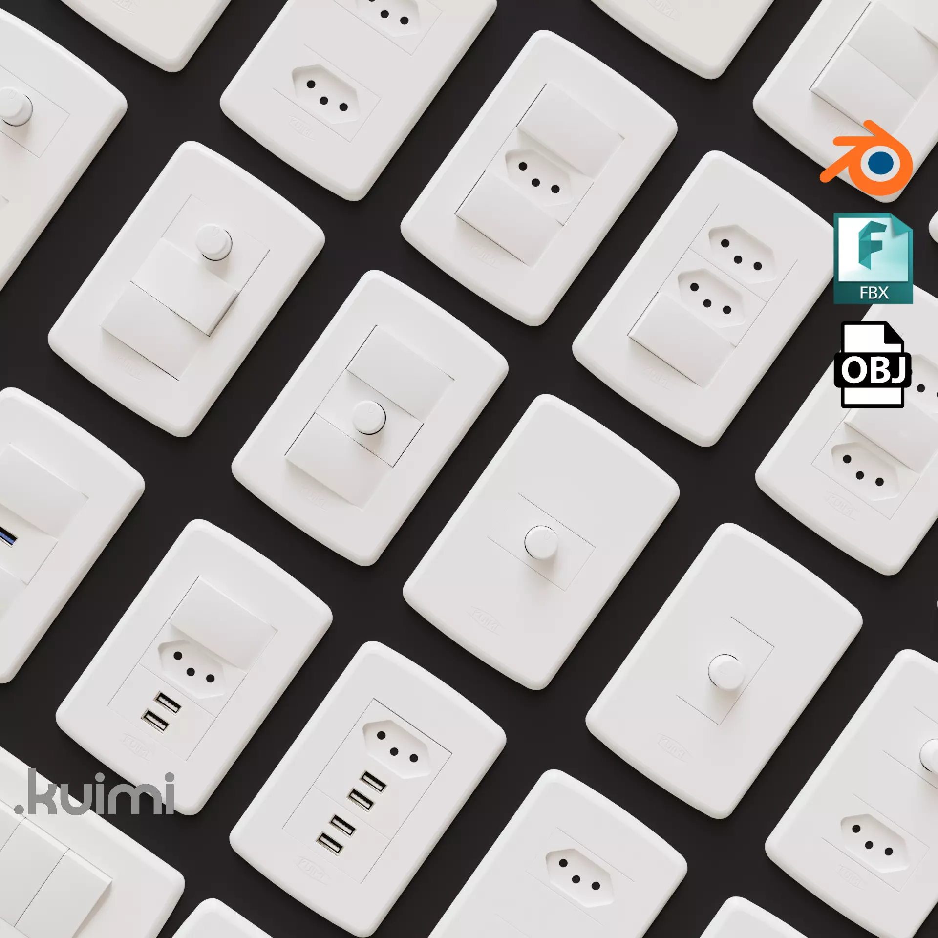 This pack includes 35 differents Types of Outlets and Switches, including Dimmers and USB Chargers