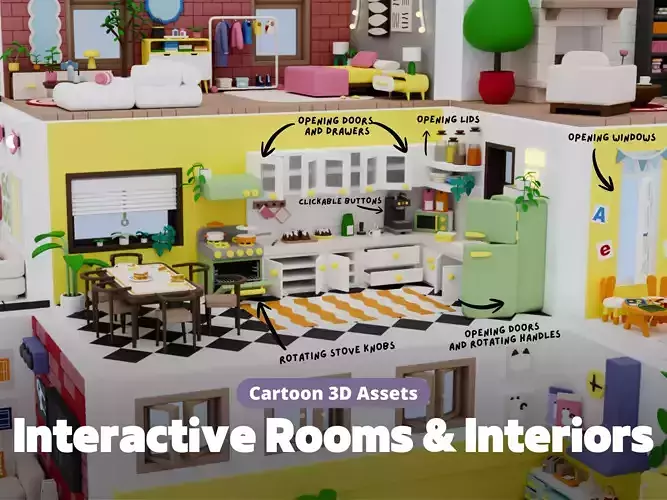Cartoon Interactive Rooms and Furniture - Cozy Interior Pack