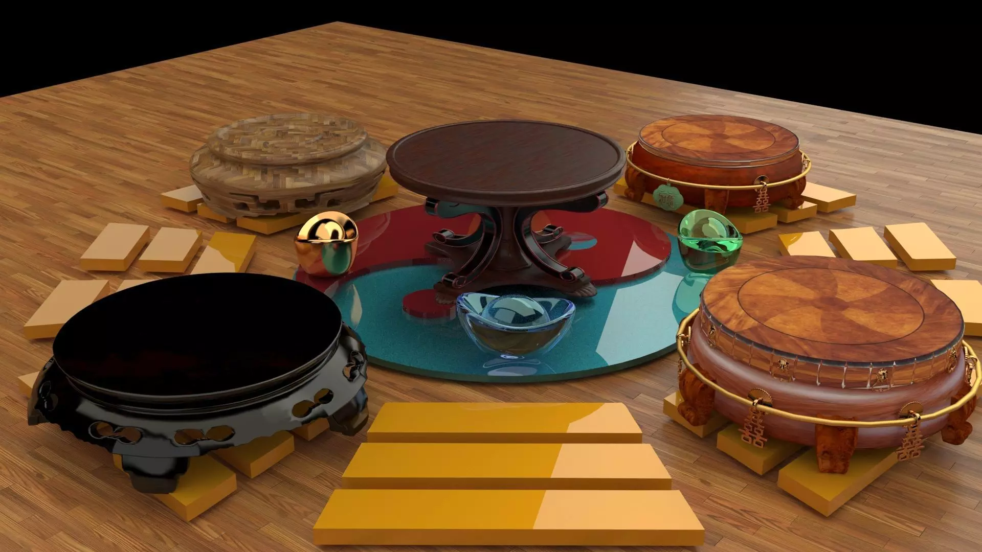 The model has material settings that define how surfaces look (color, shine, transparency, etc.).