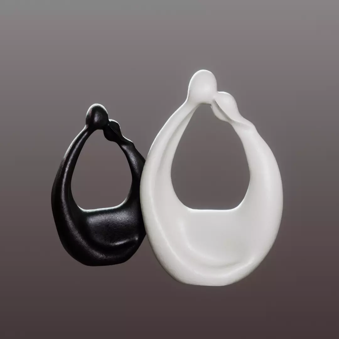 The item in the image is a decorative figurine sculpture consisting of two abstract, intertwined human-like forms. One is black, and the other is white, posed in a way that suggests affection, unity, or harmony. This is a common style in modern minimalist home décor.