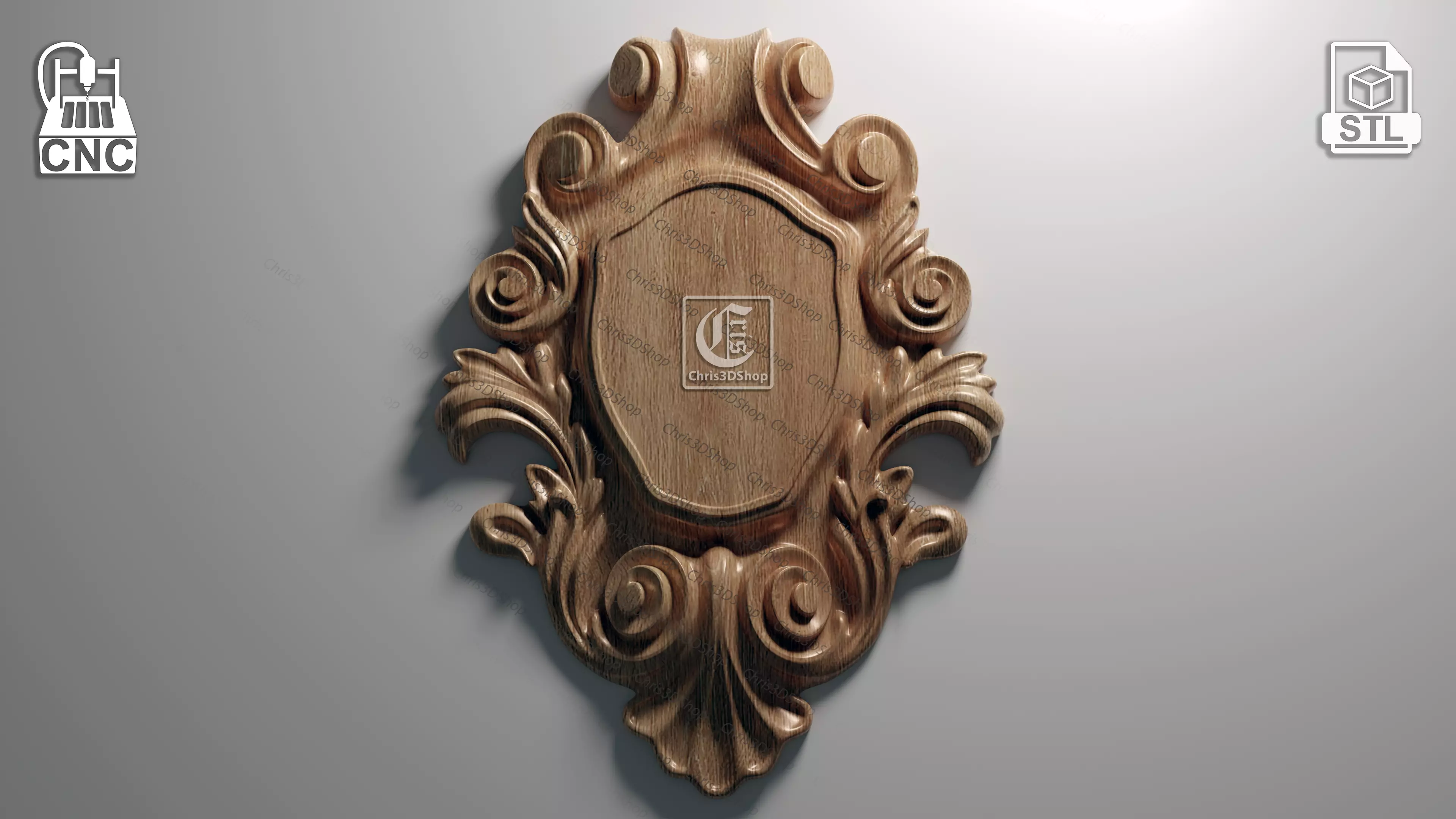 Decorative Plaque - STL file that can be used with Aspire, Vcarve, Carveco ,Artcam or any other software that allows you to import the Stl file format, to be carved from wood with a CNC Router.