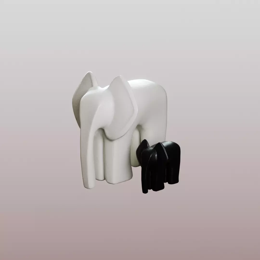 A clean, stylized 3D model of a parent and baby elephant crafted with smooth, modern shapes and a sculptural aesthetic. The contrasting monochrome materials give the pair a gallery-style look, making them ideal for:Interior rendersProduct visualizationStylized animationsDecorative assets in game environmentsModern art scenesThe geometry is tidy, the forms read well from a distance, and the overall silhouette is strong enough to hold up in close-up shots too.