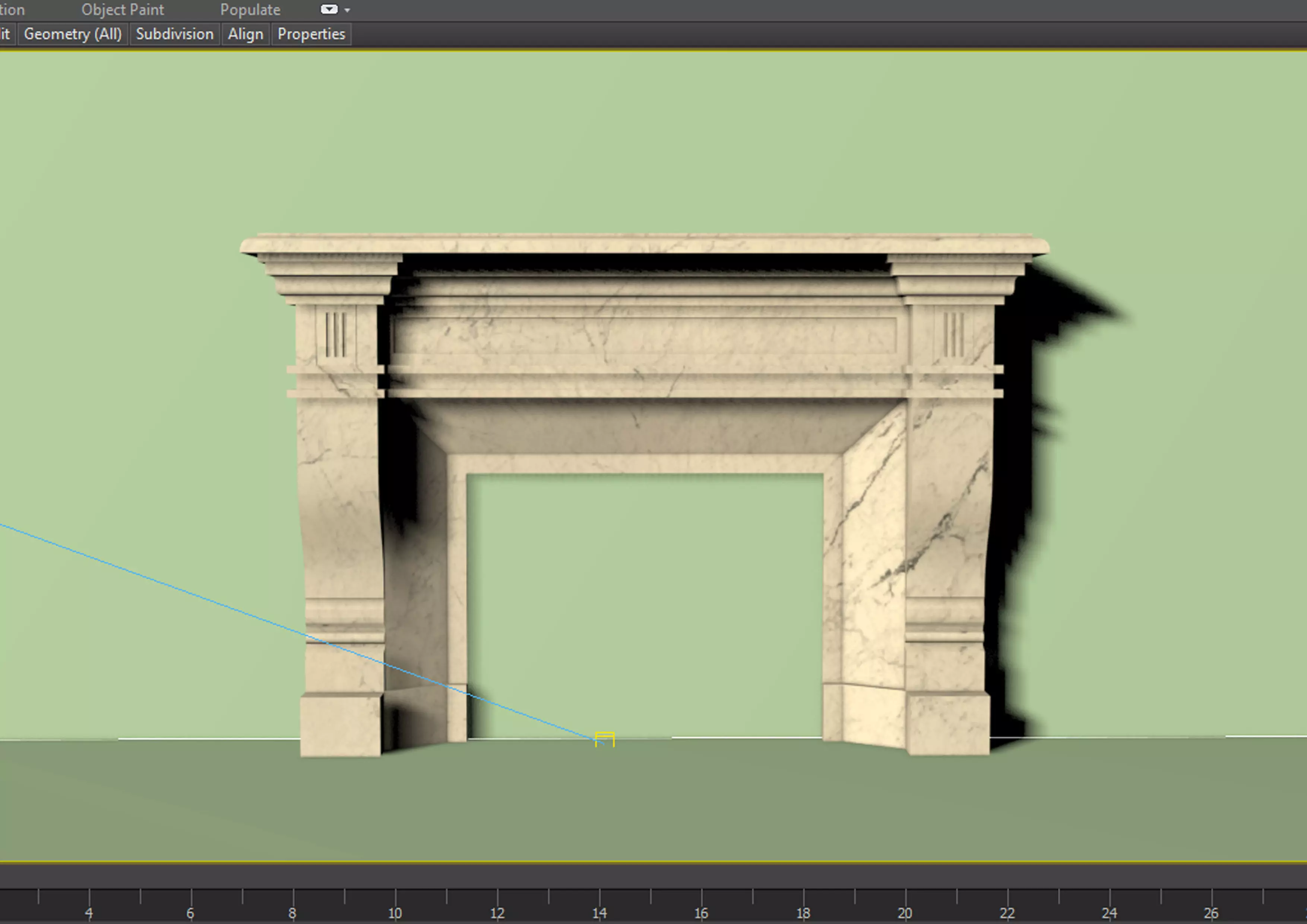 The model has material settings that define how surfaces look (color, shine, transparency, etc.).