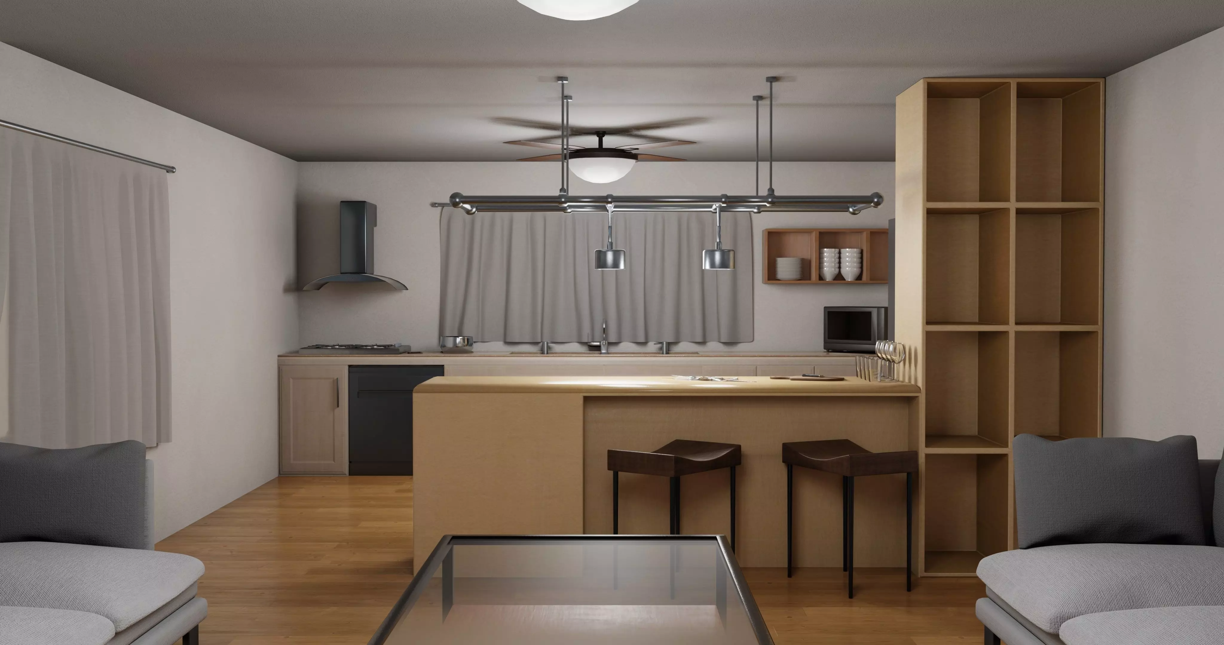 Livingroom With Kitchen_Paddle Box Glass