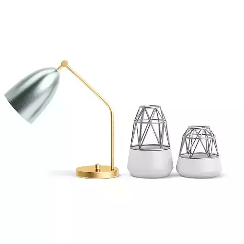 Golden lamp with dark blue shade and decoration vases 3d model. Compatible with 3ds max 2010 (V-Ray, Mental Ray, Corona) or higher, Cinema 4D R15 (V-Ray, Advanced Renderer), FBX, OBJ and Unreal Engine.