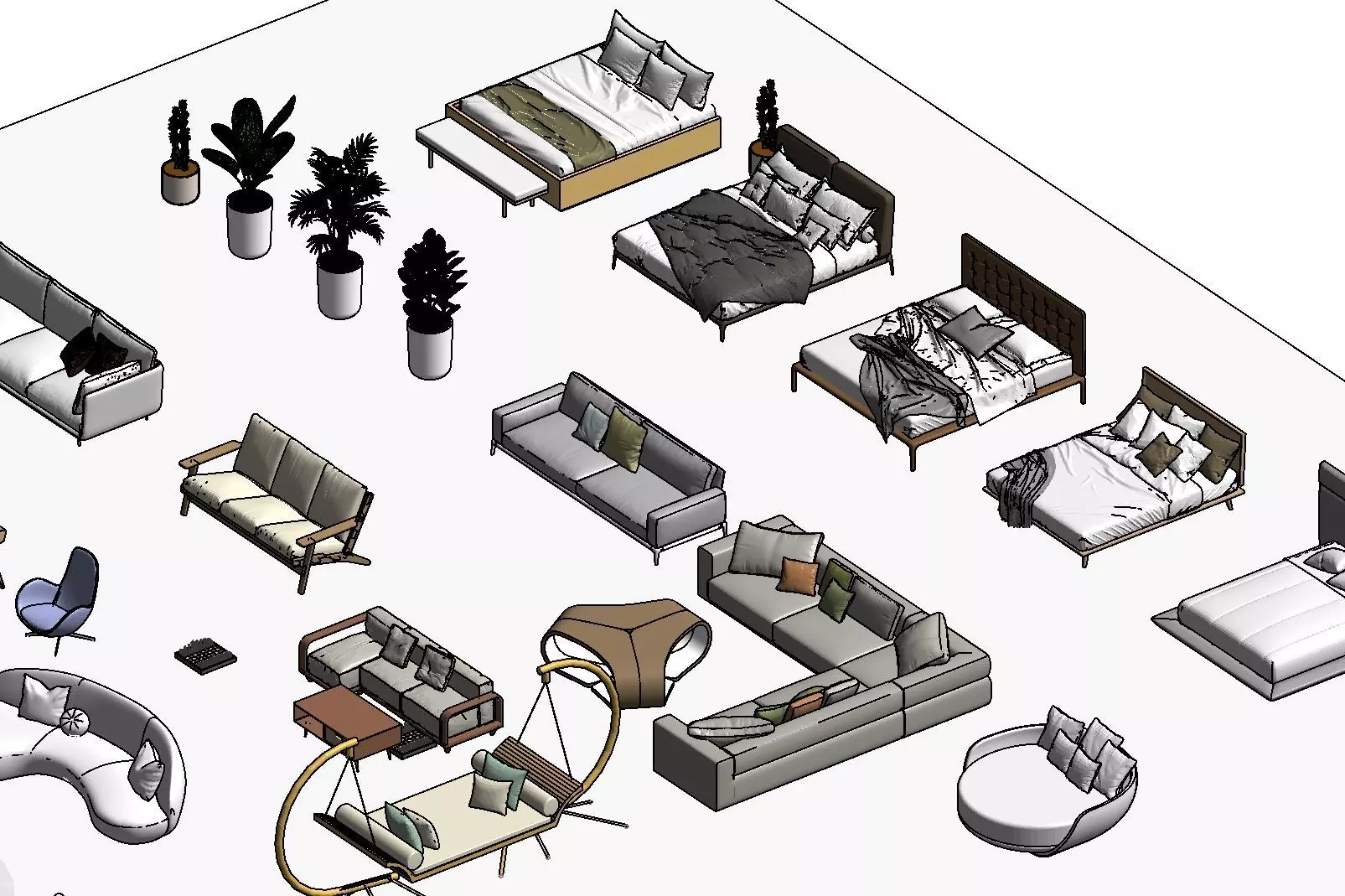 The model has material settings that define how surfaces look (color, shine, transparency, etc.).