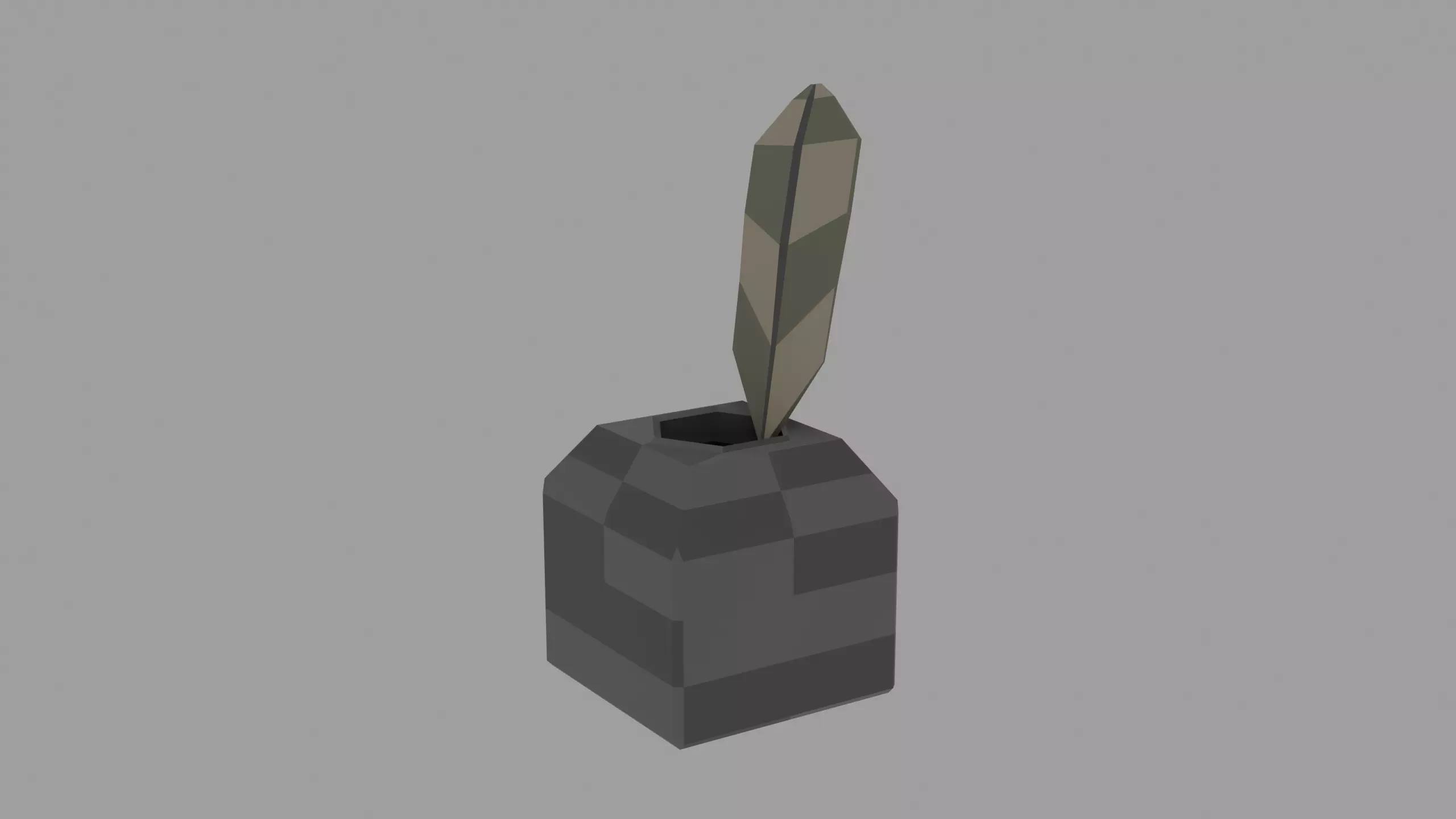 A low poly stylized inkwell and quill set designed for medieval writing and study scenes.