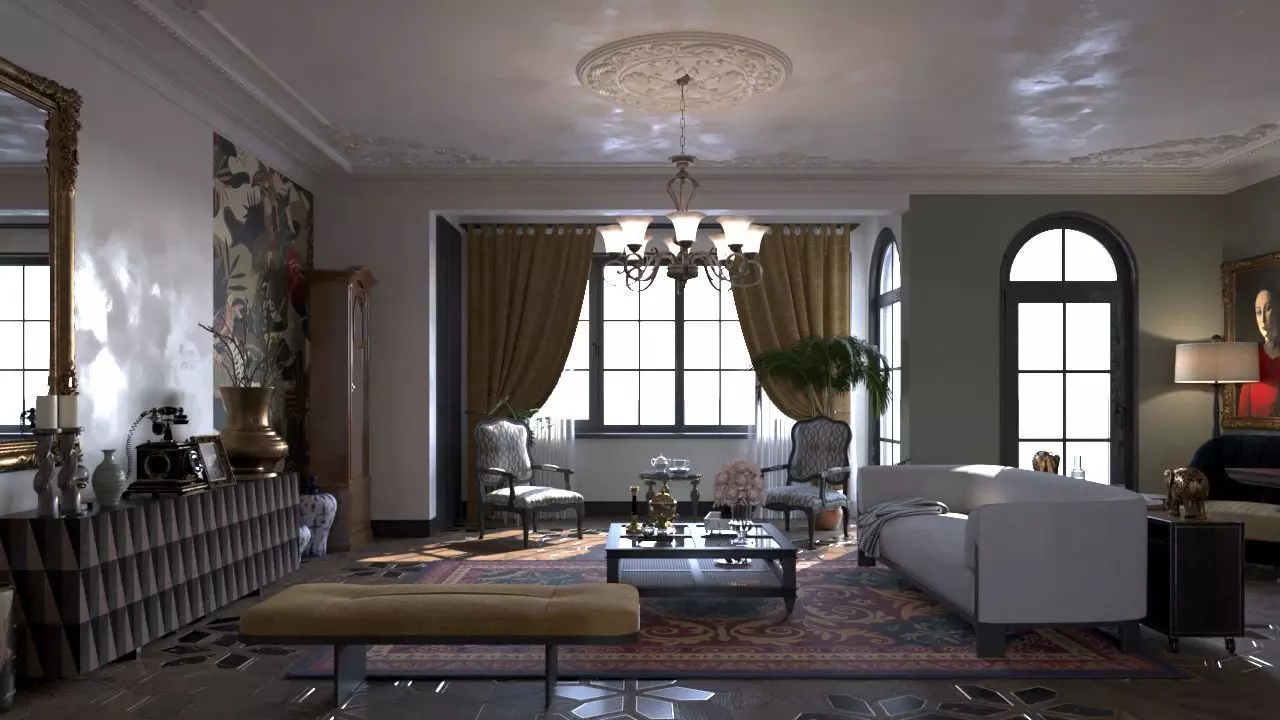 The model has material settings that define how surfaces look (color, shine, transparency, etc.).