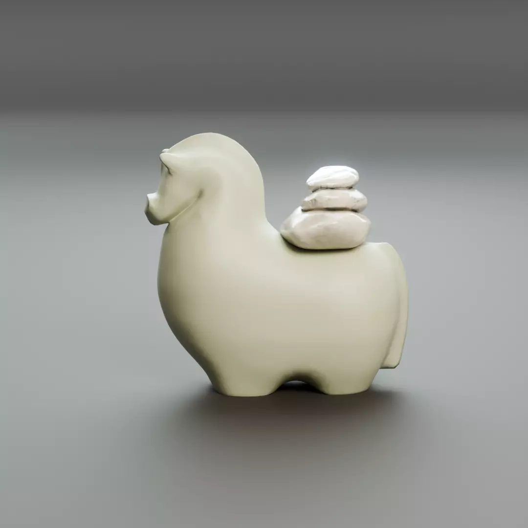 High-quality stylized 3D model of a ceramic horse figurine featuring a smooth matte body and decorative stacked stones on its back. Designed as a small decorative prop suitable for interior visualization, product rendering, games, and stylized environments.