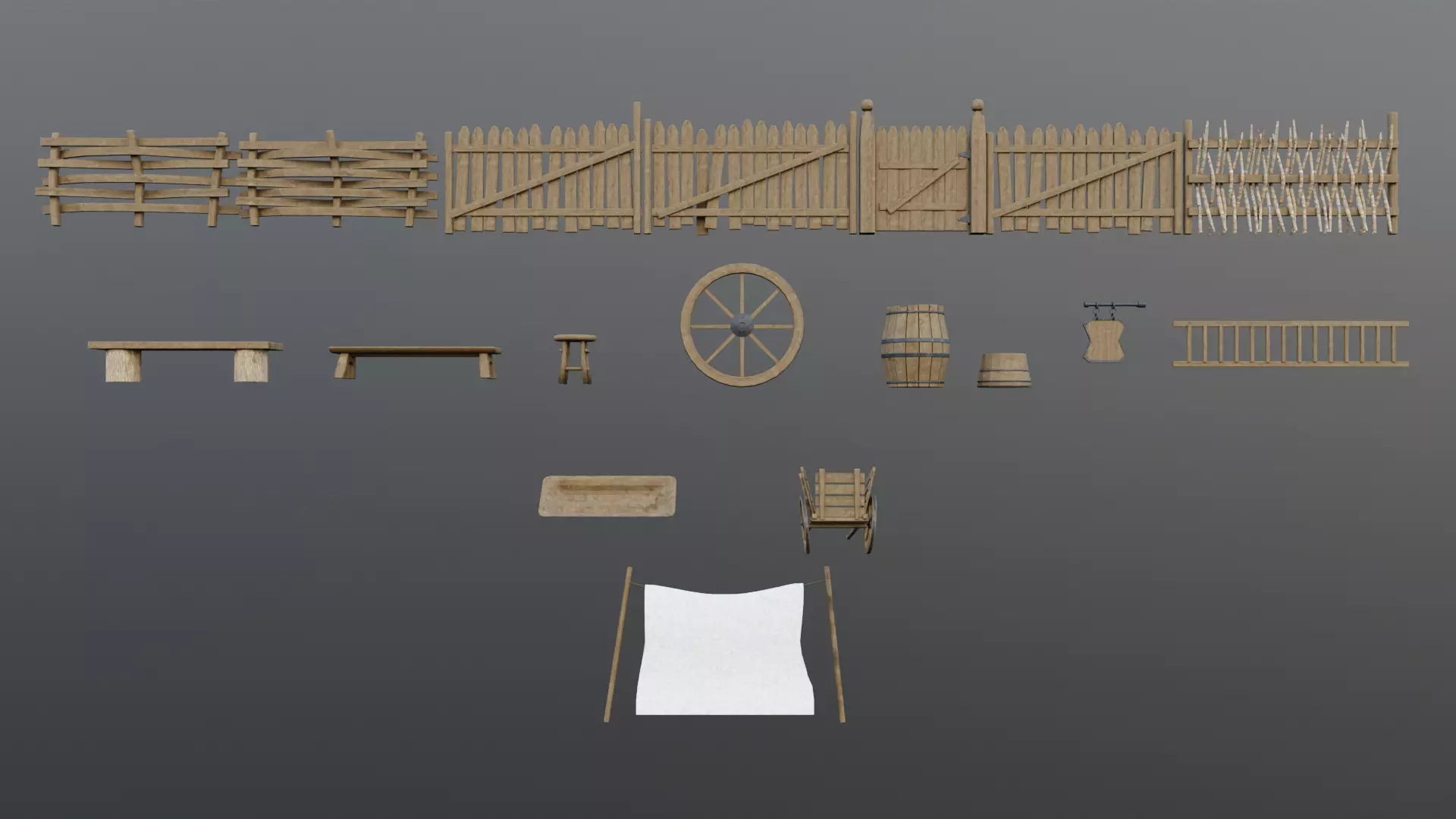 Medieval Village - Props and Decals Low-poly 3D model