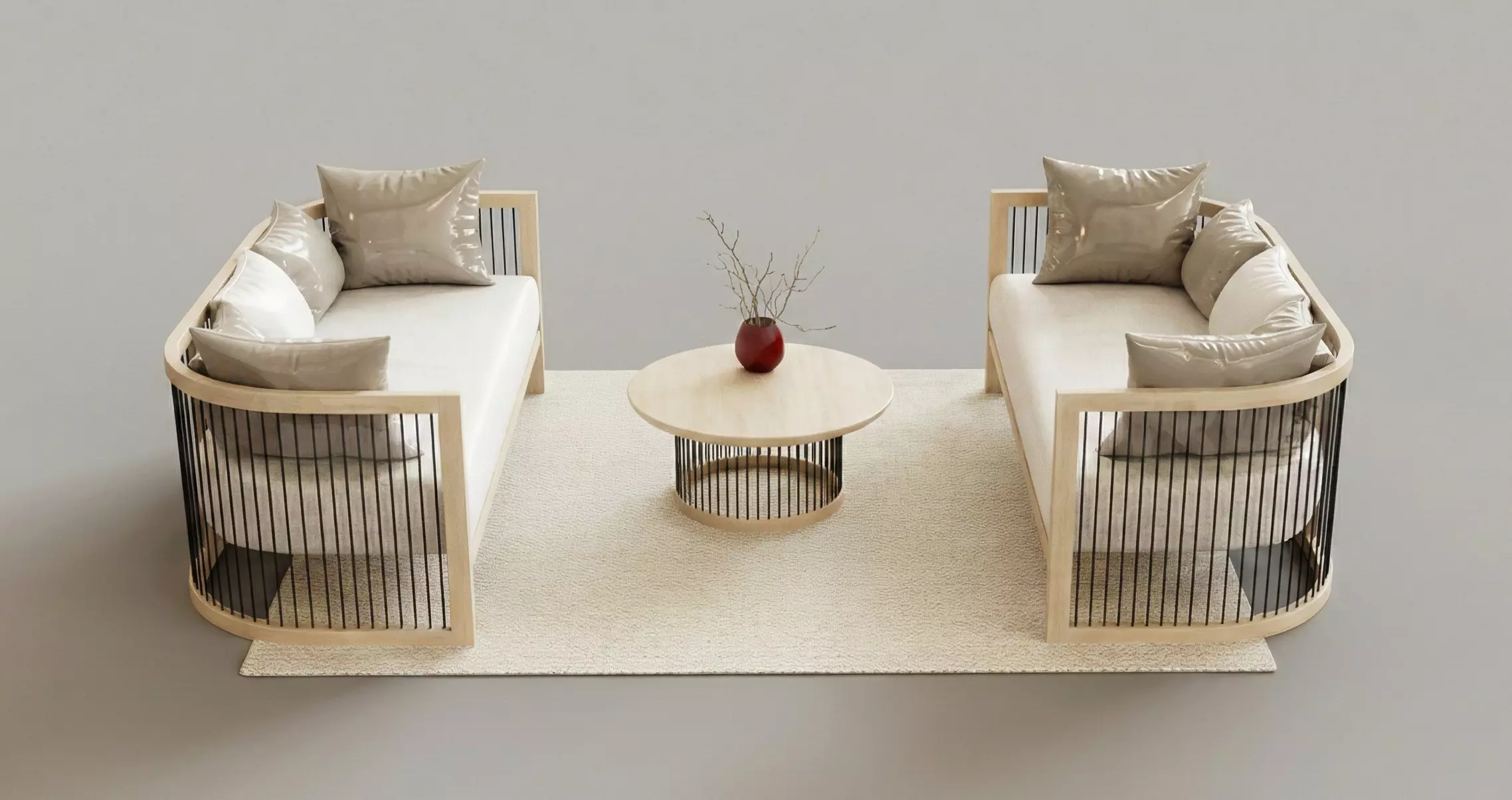 Bring a touch of serene, contemporary elegance to your architectural visualizations with this modern Japandi-style lounge set. This highly detailed, photorealistic 3D scene features two elegantly curved sofas with light wood frames and striking vertical black metal slats, perfectly paired with a matching round coffee table. Complete with plush neutral seating, realistic glossy accent pillows, a textured area rug, and a decorative vase, this fully optimized and render-ready asset seamlessly integrates into your 3ds Max workflows using Corona or V-Ray. Ideal for luxury hotel lobbies, minimalist living rooms, or high-end sunrooms, this premium model instantly elevates the airy, sophisticated atmosphere of any interior or semi-outdoor ArchViz project.