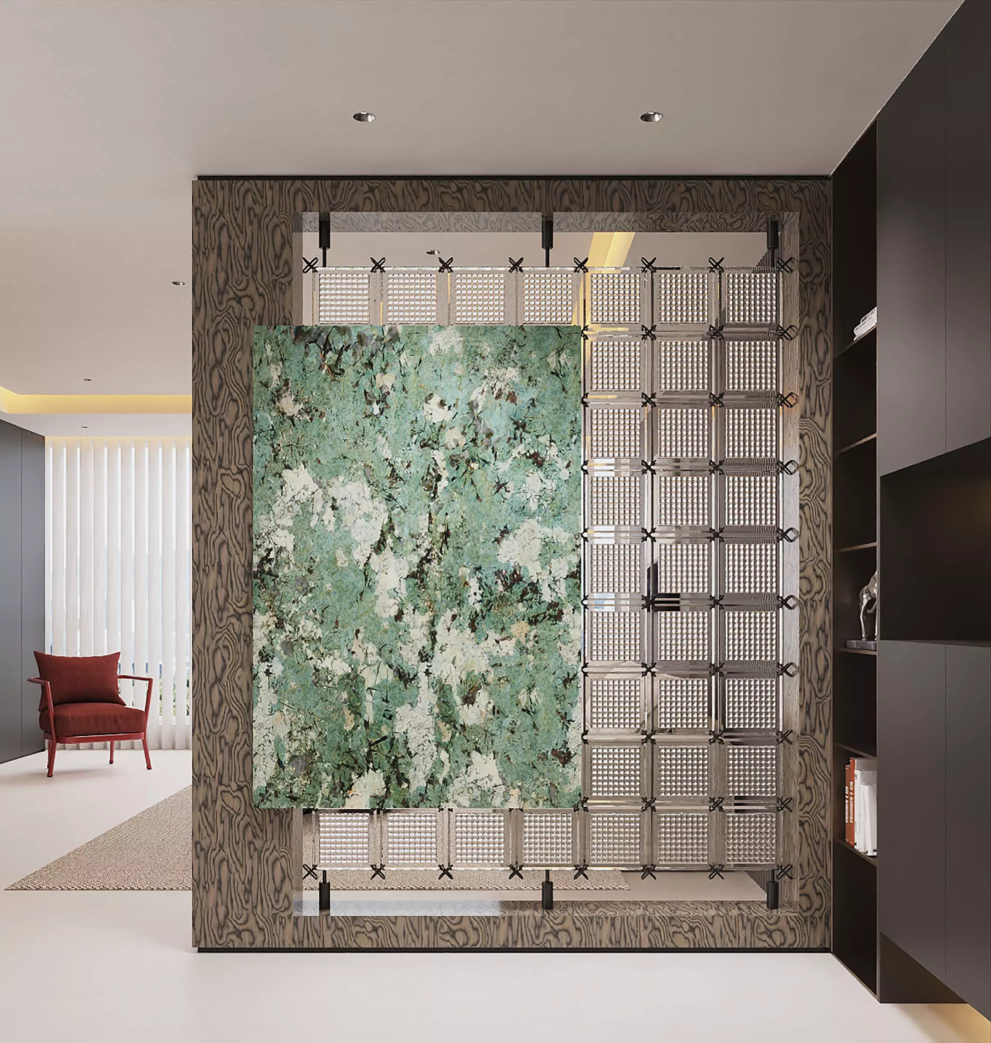Modern Minimal Lounge with Abstract Art Wall 3D model